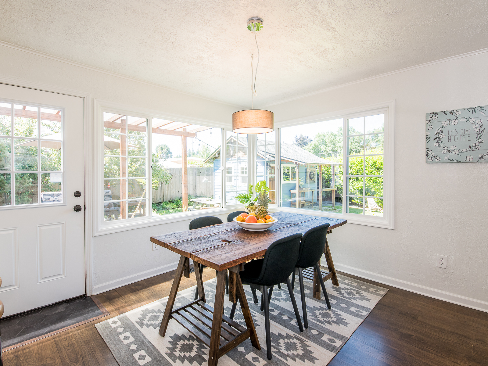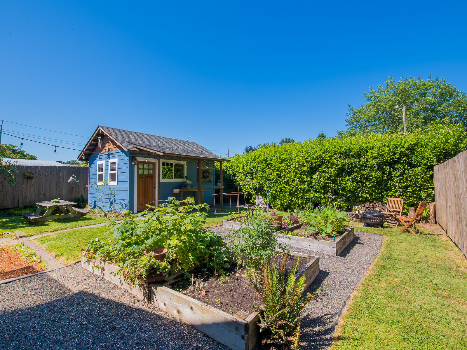 Adorable Sumner bungalow with detached studio with permits. Bright interior featuring wood burning fireplace, two generously sized bedrooms on the main and a very special window filled dining room overlooking the beautiful backyard and it’s many mature edible delights. Blueberries, raspberries, pears, apples, veggies & herbs of all kinds. Covered deck off dining for great outdoor entertaining. Studio features lofted space & functions perfectly as office, etc.