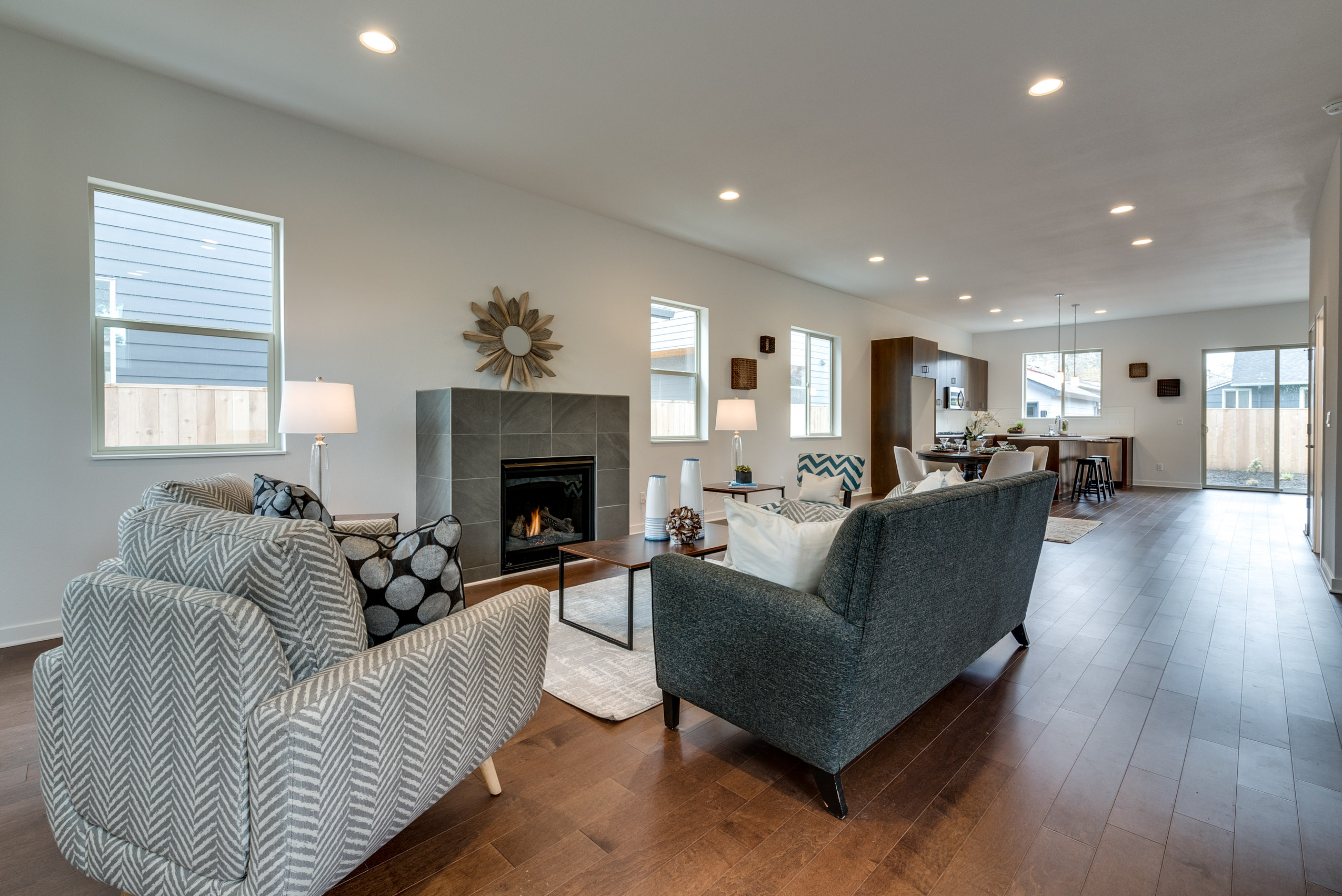 Large windows and gorgeous hardwoods flow seamlessly through the floor plan. The