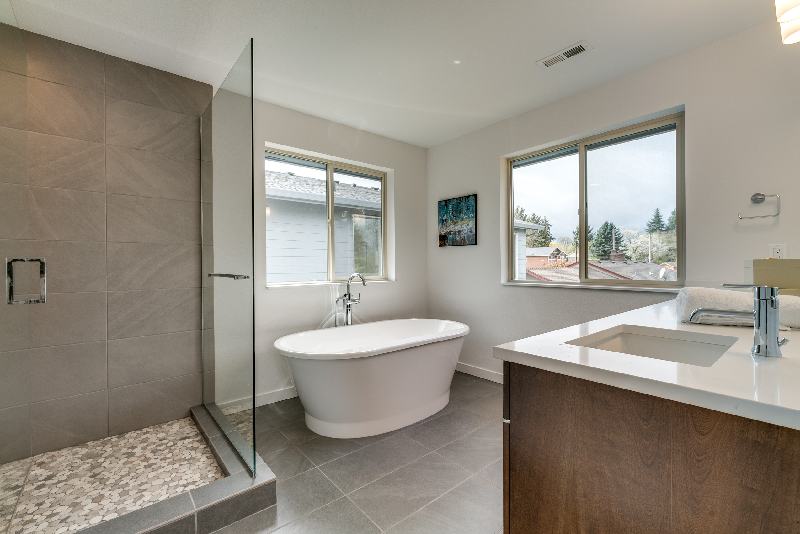 tiled shower, soaking tub and dual sinks. Close to everything this vibrant neighborhood