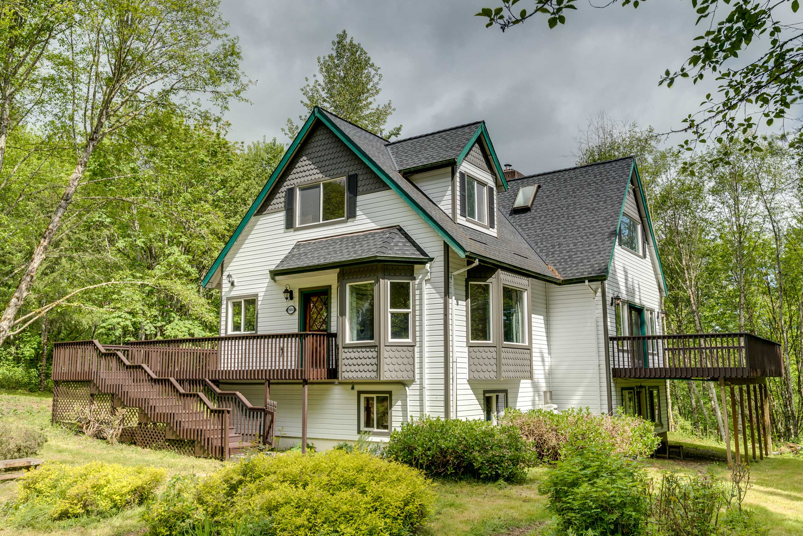 One of a kind custom storybook home on private 19+ forested acres. Open and airy. Stunning wood floors, claw foot tubs, antique fixtures. Gazebo, gardens, animal stables and pens, and apple orchard! New roof 11/2013, new siding 6/2014, new radon system. Daylight “mother in law” suite on lower level with separate entrance & full kitchen, bath and laundry. Year round creek!