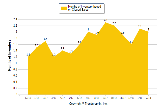 Months of Inventory based on Closed Sales in February 2018: 2