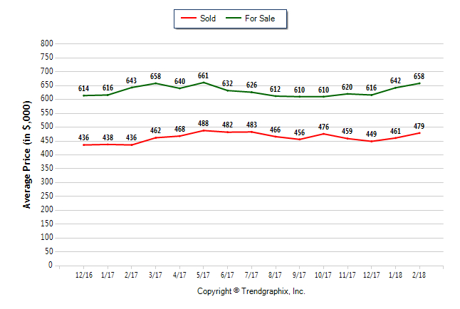 Average Sold Price (in thousand) in February 2018: $479