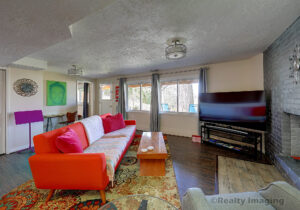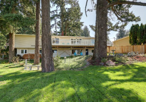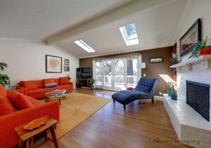 MCM Daylight promises to delight! Vaulted Living with skylight and fireplace opens to expansive deck for spectacular west facing sunset views. Modern kitchen with quartz and adjacent dining with deck access. There’s a light filled primary bedroom, cool retro bath and a 2nd bedroom/den on the main. Lower boast ample flex space with 3 more bedrooms, two full baths, a family room, office, bonus room, laundry & storage rooms. Perfect for extended families, in-law or ADU with two exterior entrances on lower. You will love the serene backyard with firepit, meditation spot and raised beds! Style and Comfort in an easy-to-access neighborhood sanctuary!