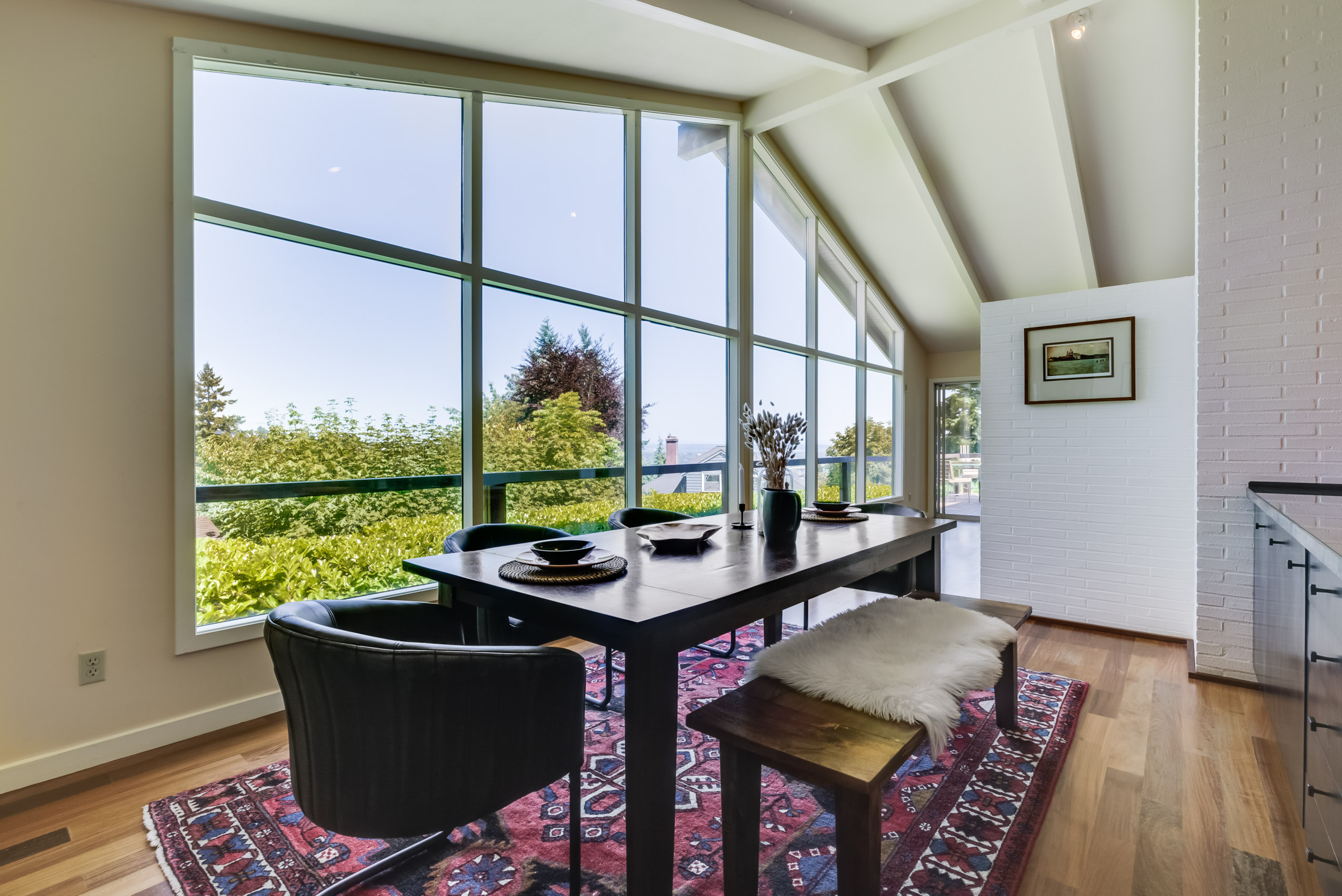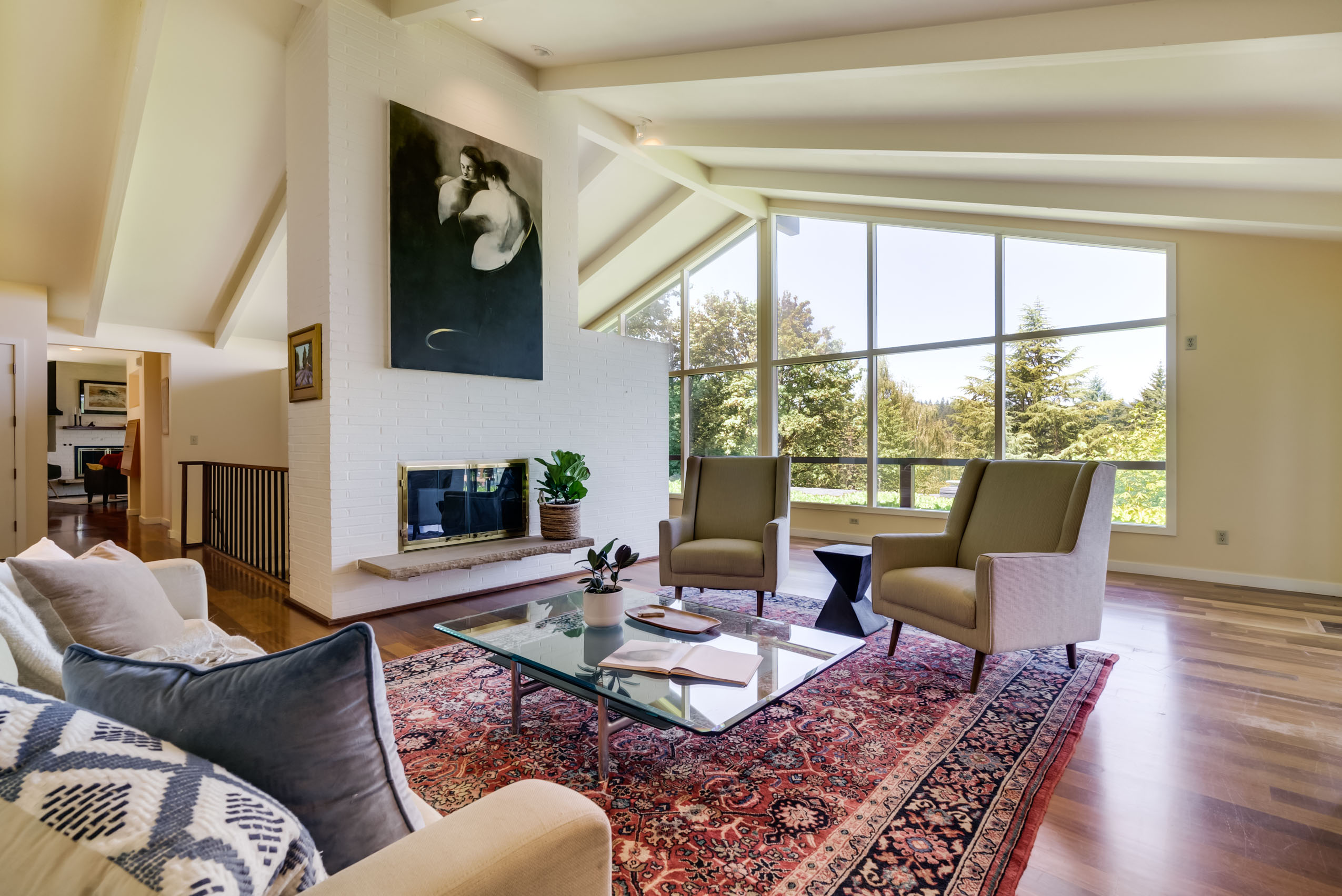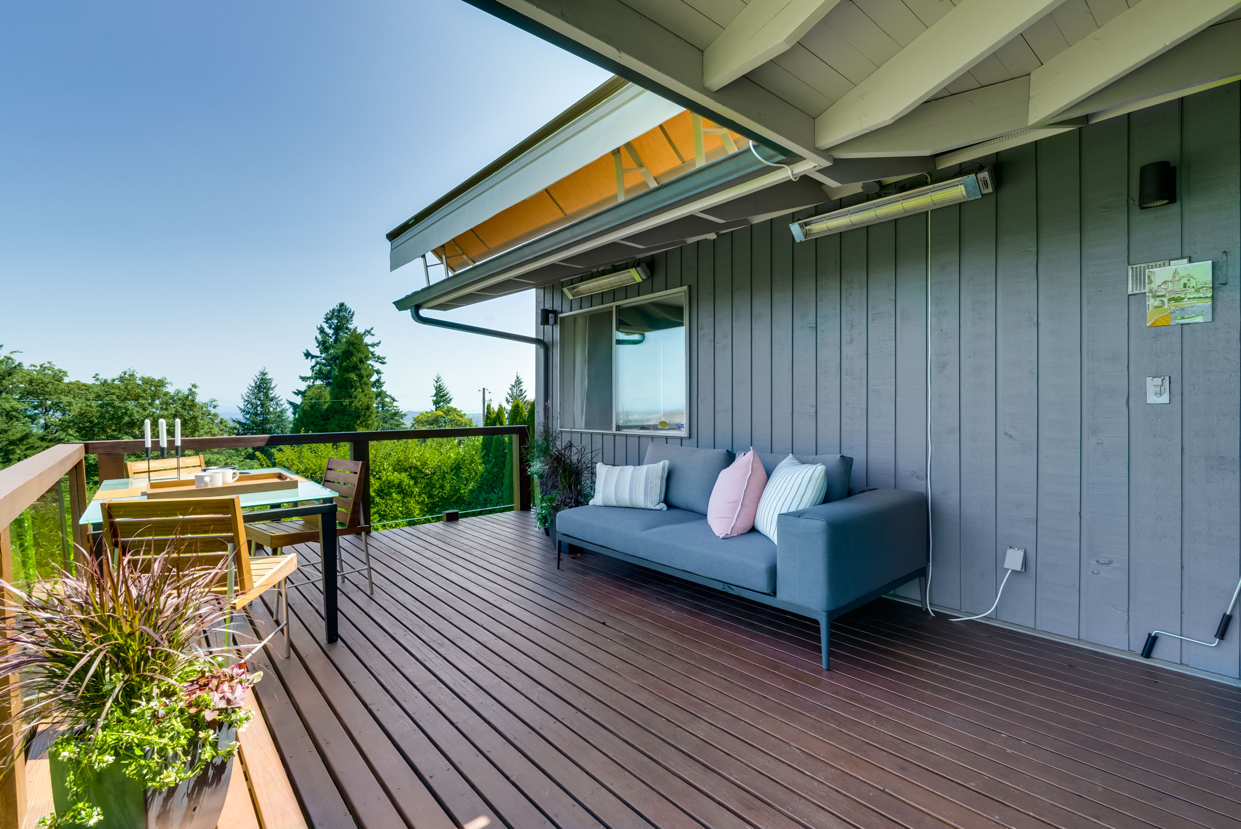 Experience the understated elegance of this true Midcentury Modern architectural gem in the heart of Portland Heights. The custom design maximizes privacy and the enjoyment of natural light. The dramatic wall of windows displays spectacular views of the west hills, city and mountains. One level living on the main and additional room to play in the day-light basement. Become enchanted with the whimsical Japanese garden and the inviting wrap around deck with retractable awning. This is the one!