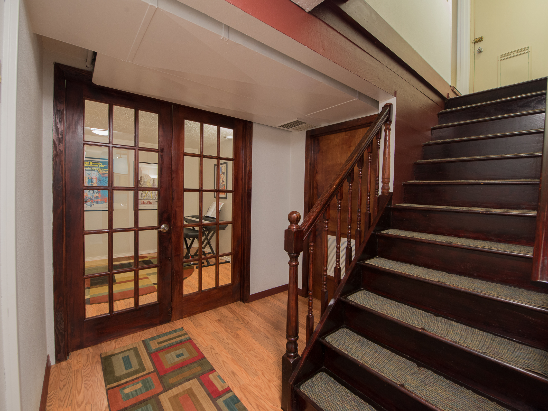 Let this 1948 Ranchalow bring you home. The living room has hardwood floors and a fireplace. The kitchen has an island, gas stove, updated cabinets and counters, and opens to the dining and living rooms. Main floor bedrooms have hardwood floors too. The master bedroom (or really awesome family room) has french doors, fireplace, laminate floors and big walk-in closet.