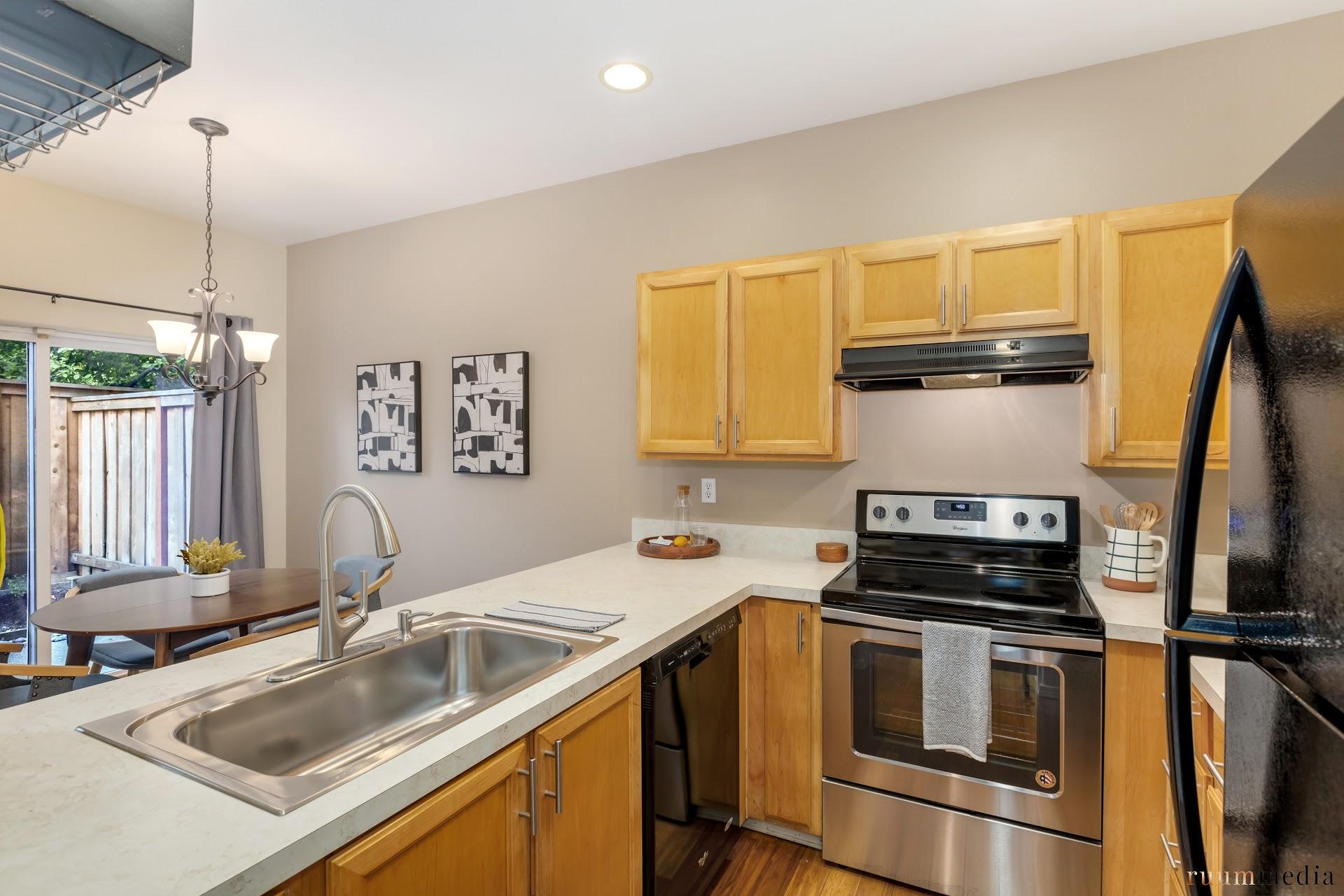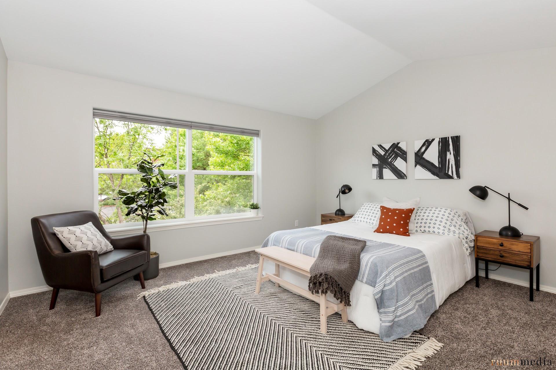 Rare 3-bed urban oasis in coveted location with walkscore of 84/bike score of 99! Open concept living with high ceilings, gas fireplace, custom shelves and new fixtures. Fresh interior paint and new kitchen appliances/windows/H2O heater. All bedrooms up with brand new carpet + vaulted master suite with dual sinks and stunning tiled shower. Private patio with cedar deck + raised garden beds for urban garden-to-table meals. Welcome home!