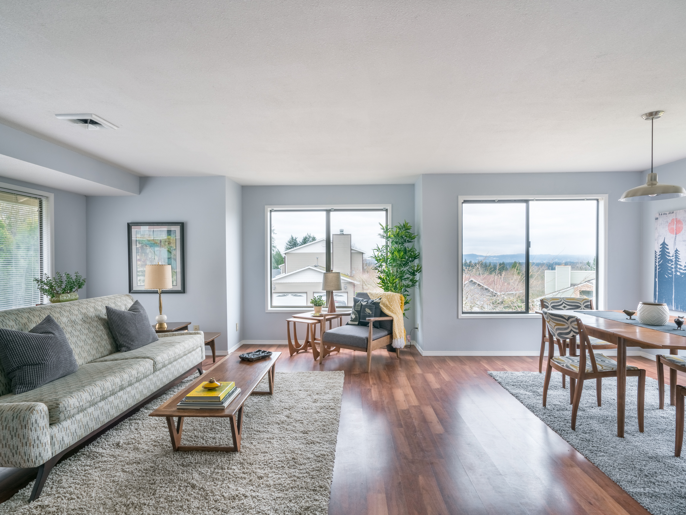 Don’t miss this gorgeous updated 1970’s home with city-scape views throughout in charming Portnomah Park. Nestled on the NW side of Mt Scott. Open concept on main floor, updated kitchen, large deck, and fenced backyard. Three bedrooms on the upper and two full baths, with the master suite featuring stunning views of Portland. Surrounded by green space, the serene private community offers a pool, new playground, clubhouse, and walking trails. Easy access to Leach Botanical, Foster/Lents, I-205, and Max line.