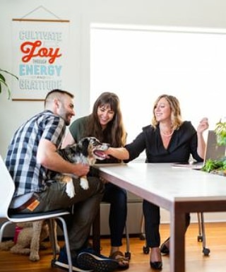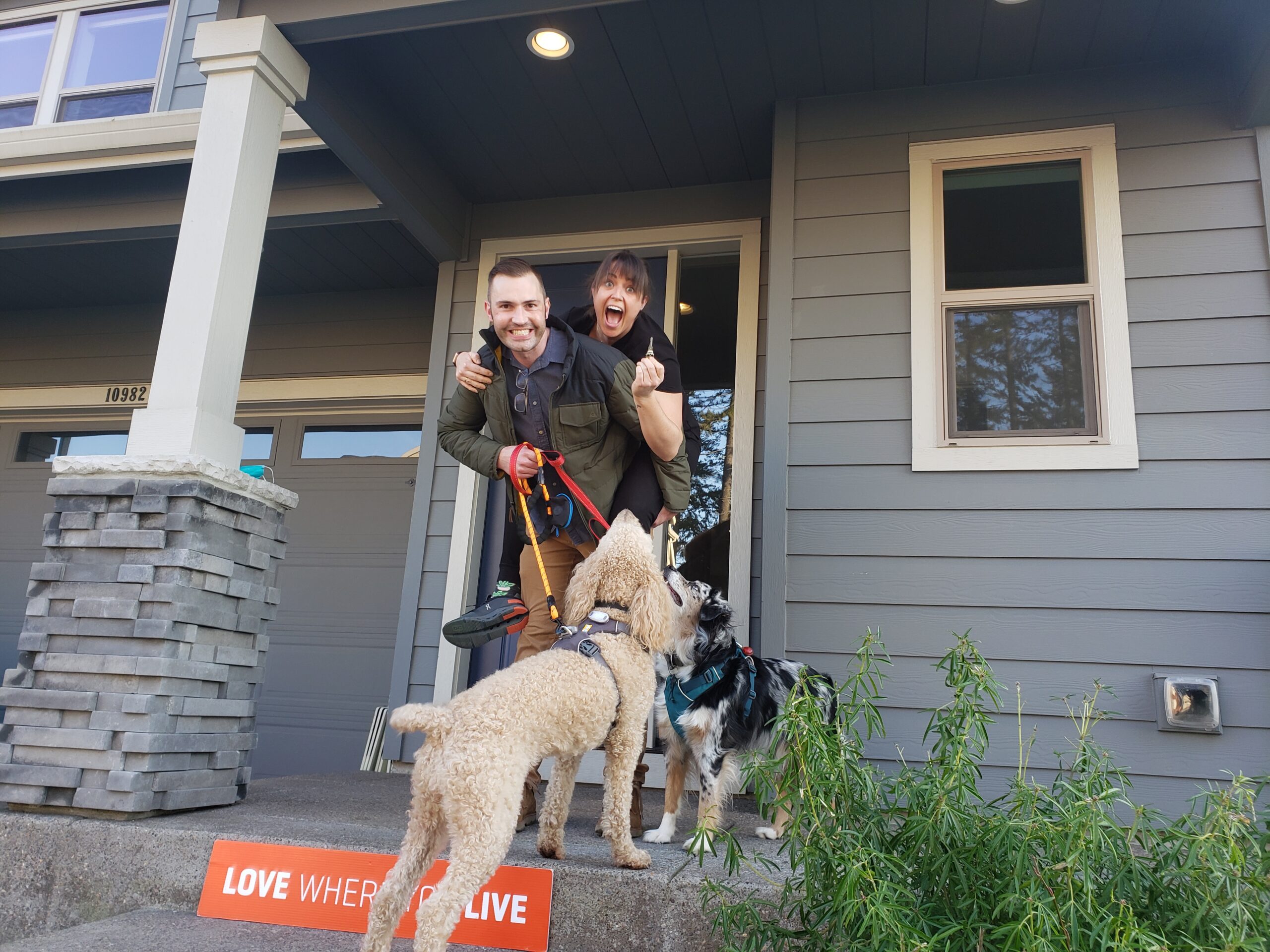 There was this time that I paid to have a promotional photoshoot done to capture the look and feel of my real estate practice using our adorable Multnomah Village office as the backdrop. My friends who were supposed to be my pretend buyers in the shoot had to cancel last minute, so the photog and I were left to work with what we had, which let’s be honest the world only needs so much of just me.  We were outside about to wrap up, and my amazing dental hygienist Jessica, her boyfriend Blake and their two adorable pups walked by. I somewhat desperately invited them to be part of the shoot and act as homebuyers, which they agreed to. I mean, you really don’t get cuter than them so it was a blessing for sure.  Maybe we were all manifesting!? That was the last time I will try to “stage” myself, but sure shit 3 years later, when it came time for them to take the leap they called me to help. I am so grateful that day led us to the journey of taking them from pretend buyers to actual homeowners of a gorgeous new home. Congrats Jessica and Blake, you’ve earned every bit of it, and I’m soooo proud of you!