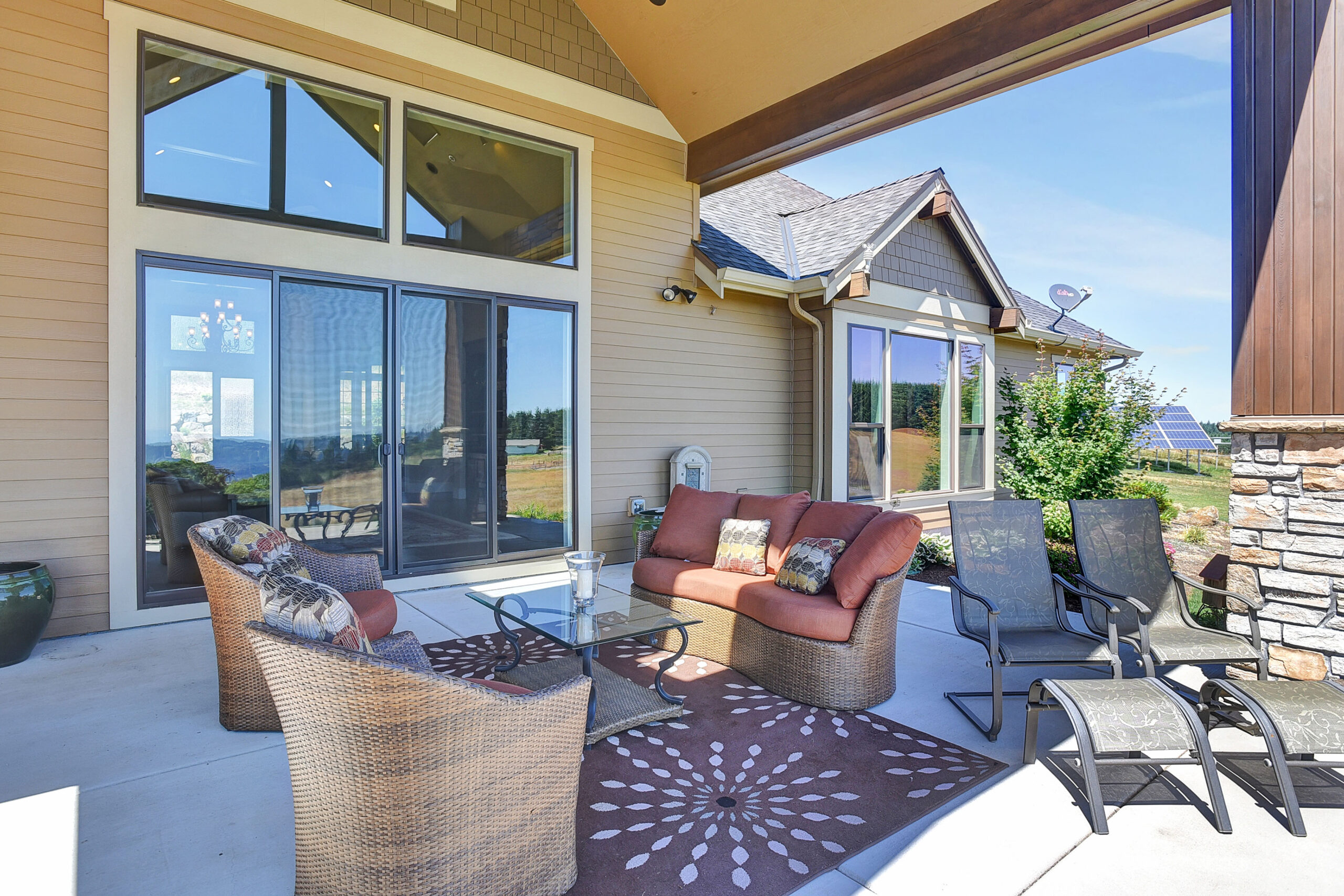 This stunning, solar-powered Chehalem Mountain estate is surrounded by vineyards and lavender fields. Built in 2015 by a Street of Dreams Builder with incredible attention to detail, the one level floor plan features three beds with en suite baths plus two offices. Each room has stunning views of the 7.4 acre parcel that would be perfect for a hobby vineyard. The additional 749 square foot bonus space upstairs and 451 square foot bonus space in the basement are waiting to be finished to suit your needs.