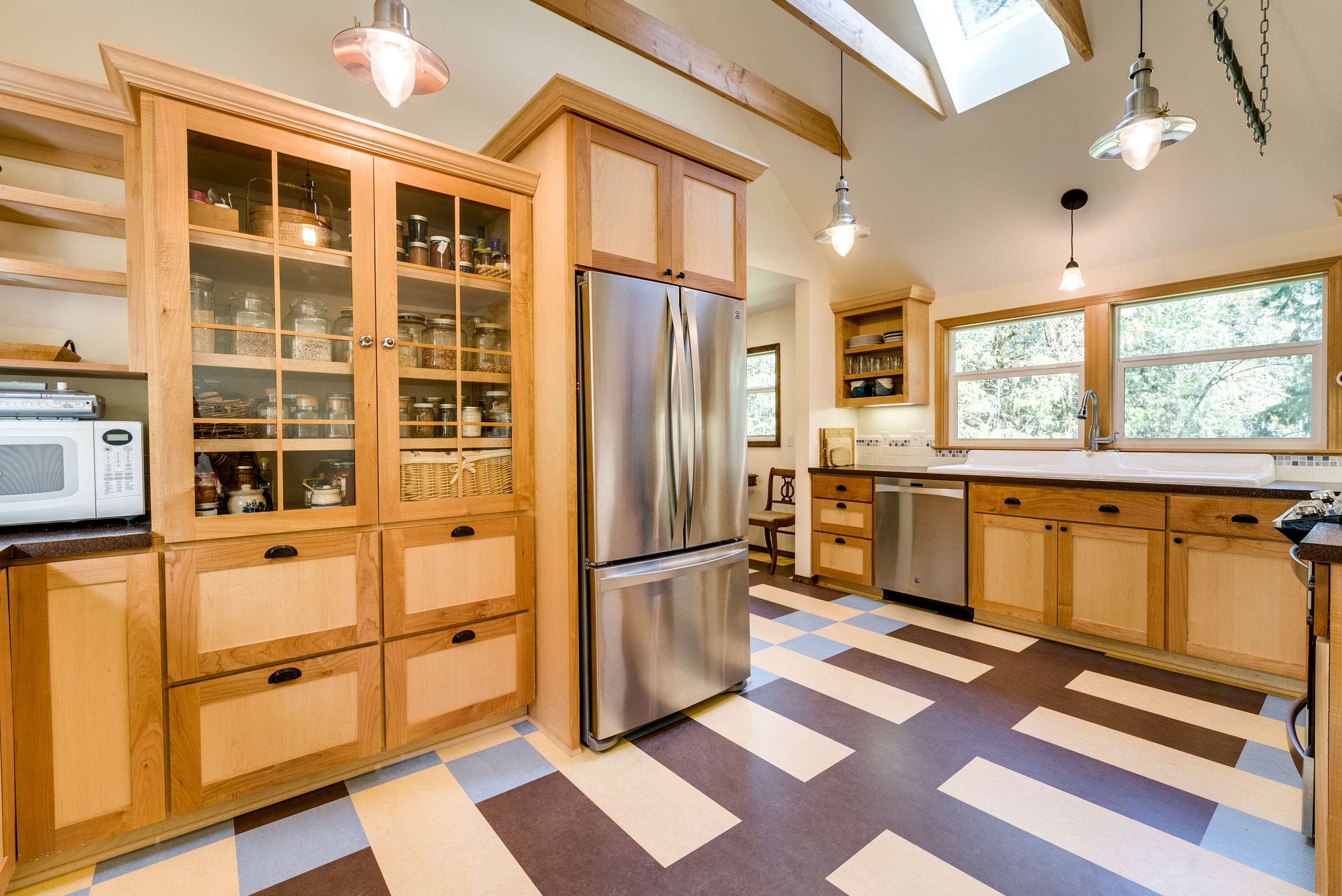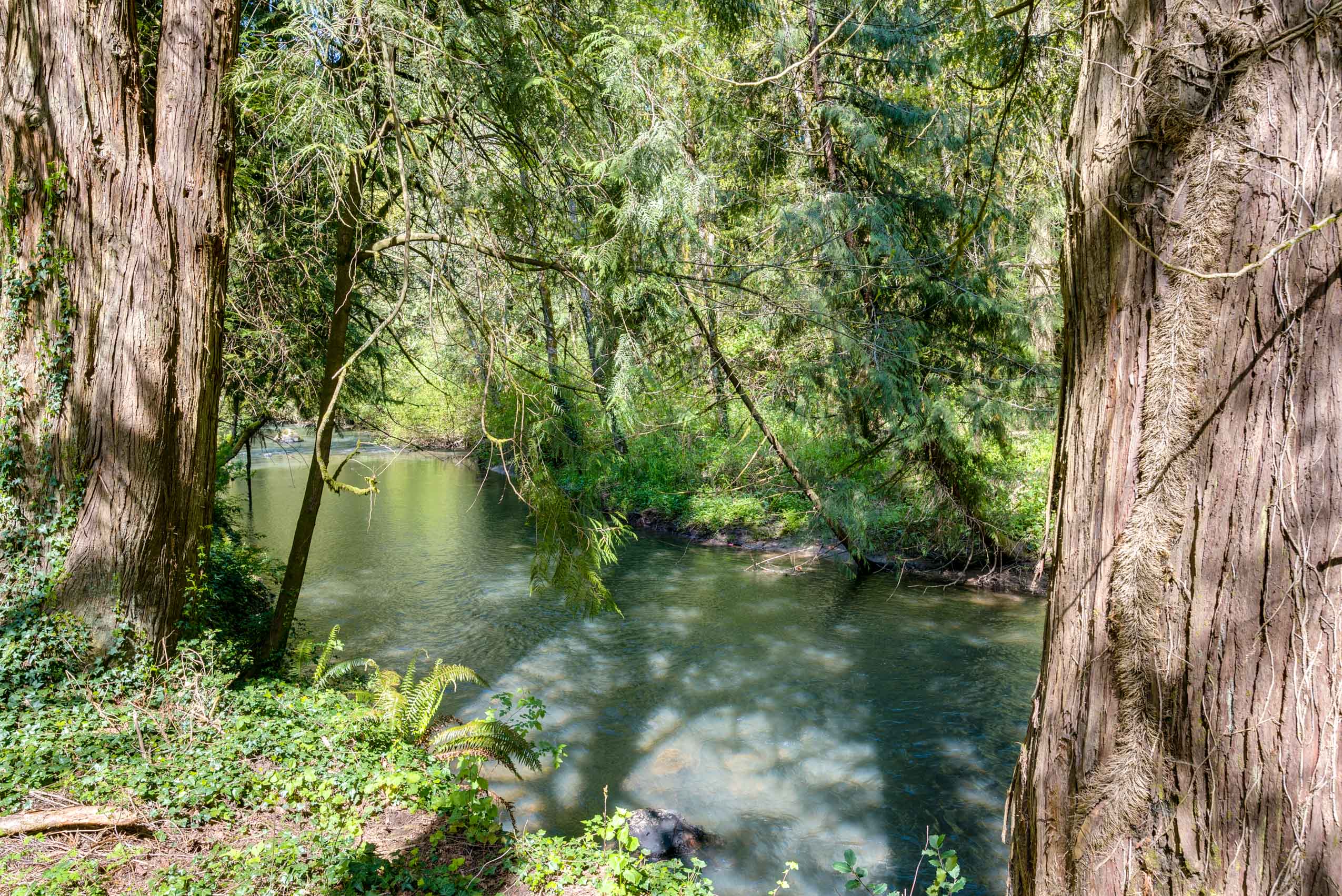 Across from Leach Botanical Gardens, this home is nestled on nearly an acre of private, peaceful, wooded property with year round creek views and access. Perfect for the person seeking sanctuary in nature, but wants to be minutes away from all the fun of the city. Updates throughout this beautiful cottage in the woods includes; maple wood floors, custom kitchen, stainless steel appliances, built-ins, new windows throughout, updated bathrooms, permitted wood burning stove, updated systems, 40 year roof installed in 2014, skylights, and wool carpet in bedrooms, just to name a few. 400 additional feet of space above the garage—just waiting to be finished. French doors that open onto the back deck, add charm to what will be your private paradise.