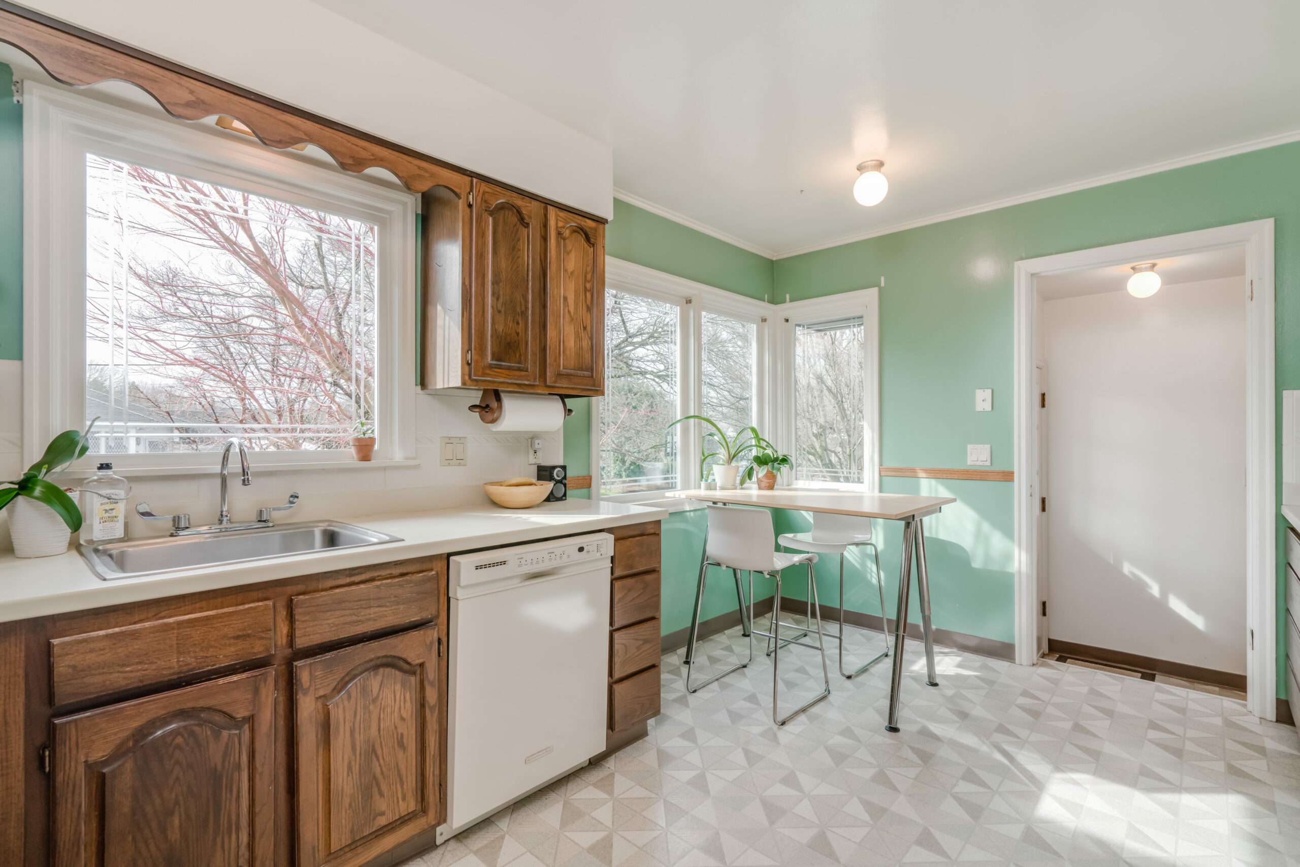 Perched perfectly on SE Ash, this 1948 one level home with expansive basement, features three bedrooms and two bathrooms across 2,800 square feet. The main floor formal spaces and master bedroom have been carefully updated with period lighting, refinished hardwood floors, a gas open box fireplace, designer colors and a new signature front door. Two additional bedrooms flank the master bedroom along with a full bathroom, while the large eat-in kitchen faces south with an adjacent garage side entry and direct access to the basement.