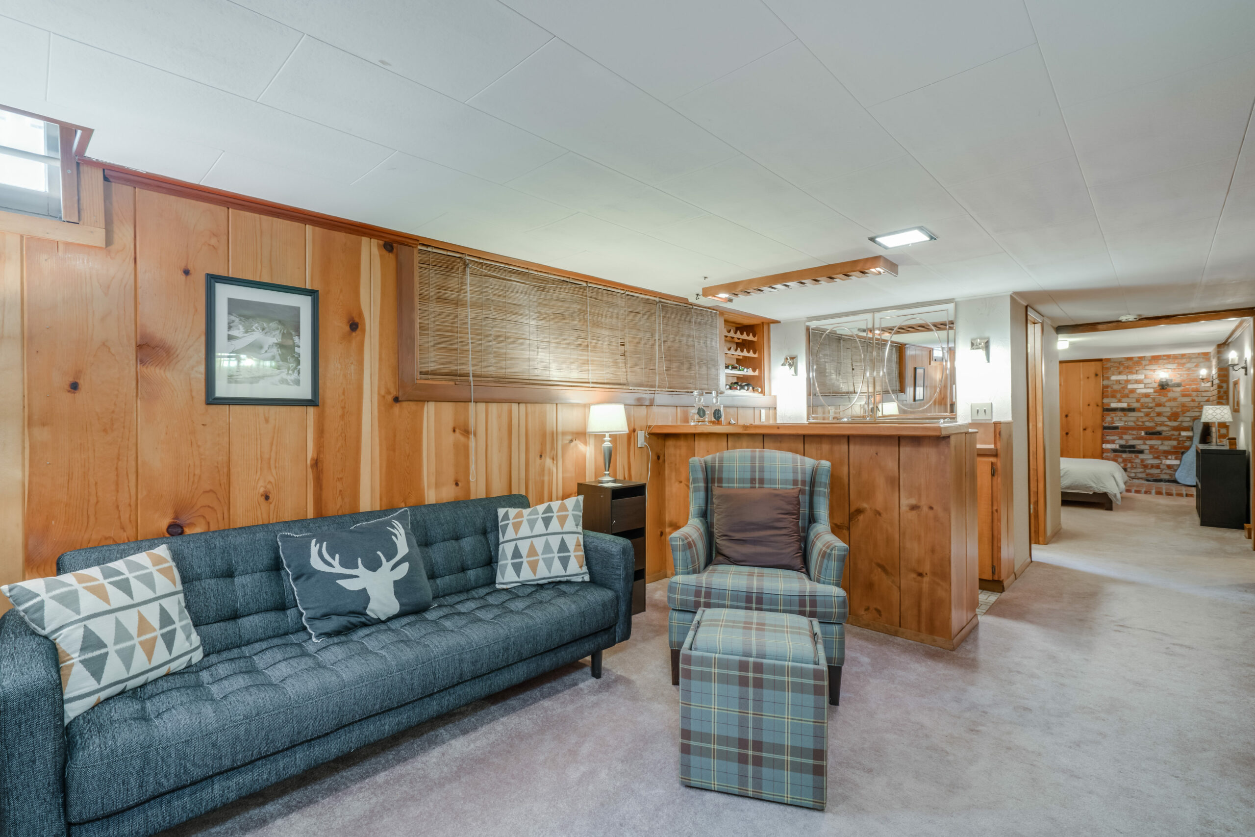 The lower floor has 1,400 square feet and features a fourth non-conforming bedroom space, cozy family room with classic knotty pine inspired bar, office and two large storage rooms with plenty of potential for a shop, kid’s playroom or southeast’s largest wine cellar.