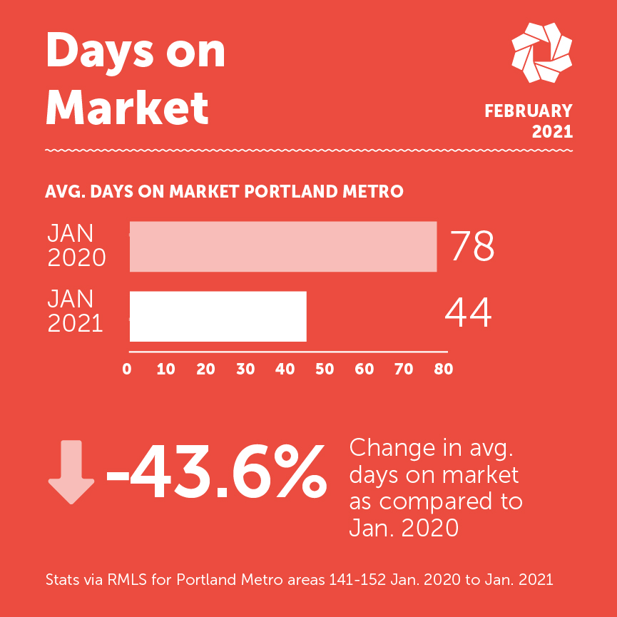 Not only are there very little homes on market, but the homes that do make it to market sell quick! Last year it took an average of 78 days and now only 44!
