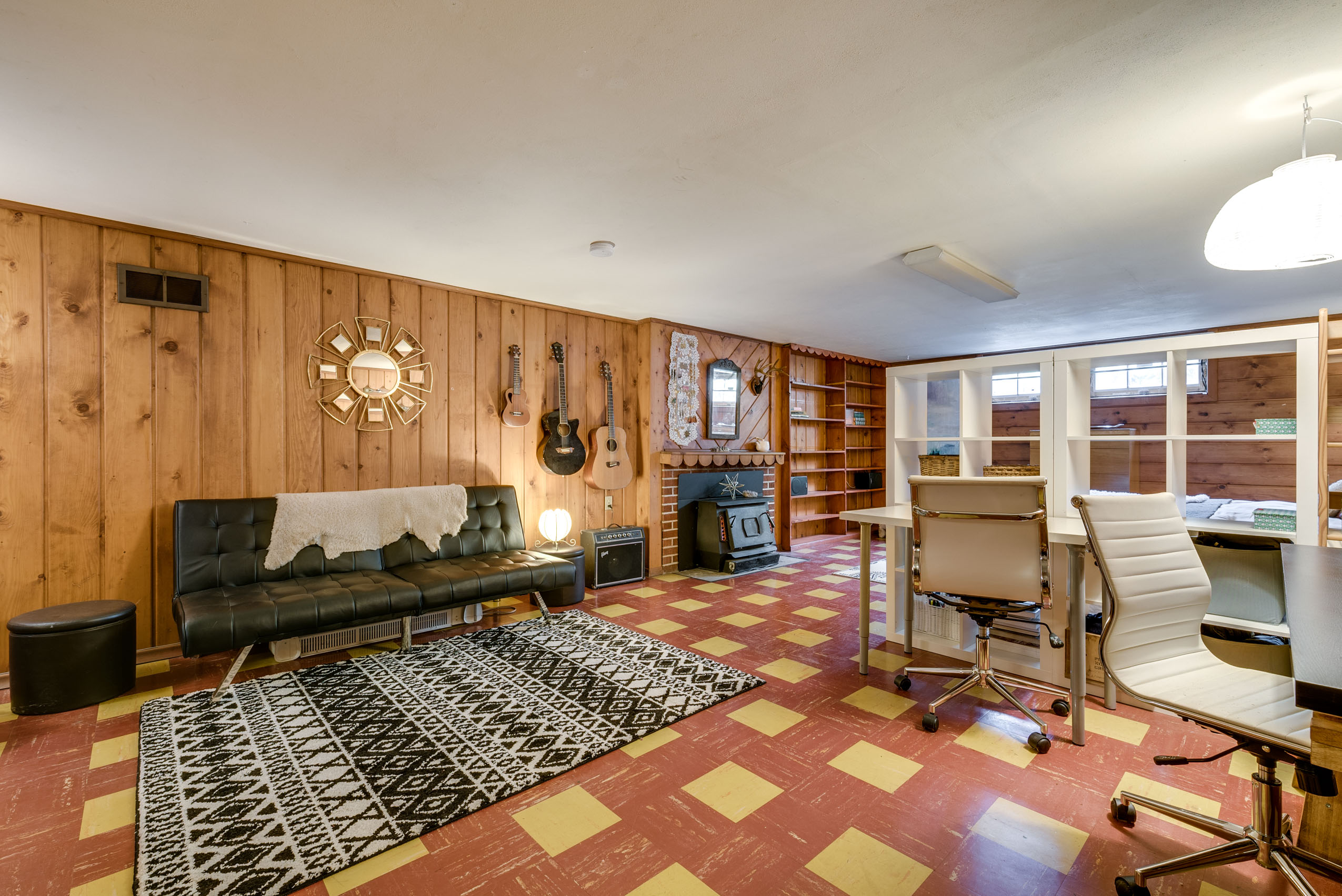This home has all the character you want in a Mid Century Modern. Enjoy the kitchen which captures the era perfectly with its Classic Cookmaster oven and tiled countertops. The open floor plan is great for entertaining and you have your choice of fireplaces—upstairs or down. The basement provides a lot of extra room and is full of possibilities, including an option to add a third bedroom. The oversized, corner lot has all the bells and whistles—a covered outdoor patio with a fireplace and built-in charcoal grill, garden boxes ready for planting and a side yard that is overlooked by an inviting porch swing. The apple tree, 2 pear trees, fig tree, hardy kiwi, blueberries, grapes, raspberry, and honeyberries will have you enjoying their bounty every spring, summer, and fall. Newly painted, inside and out, with a 2-car garage, this Reed College area gem is ready to welcome you home.