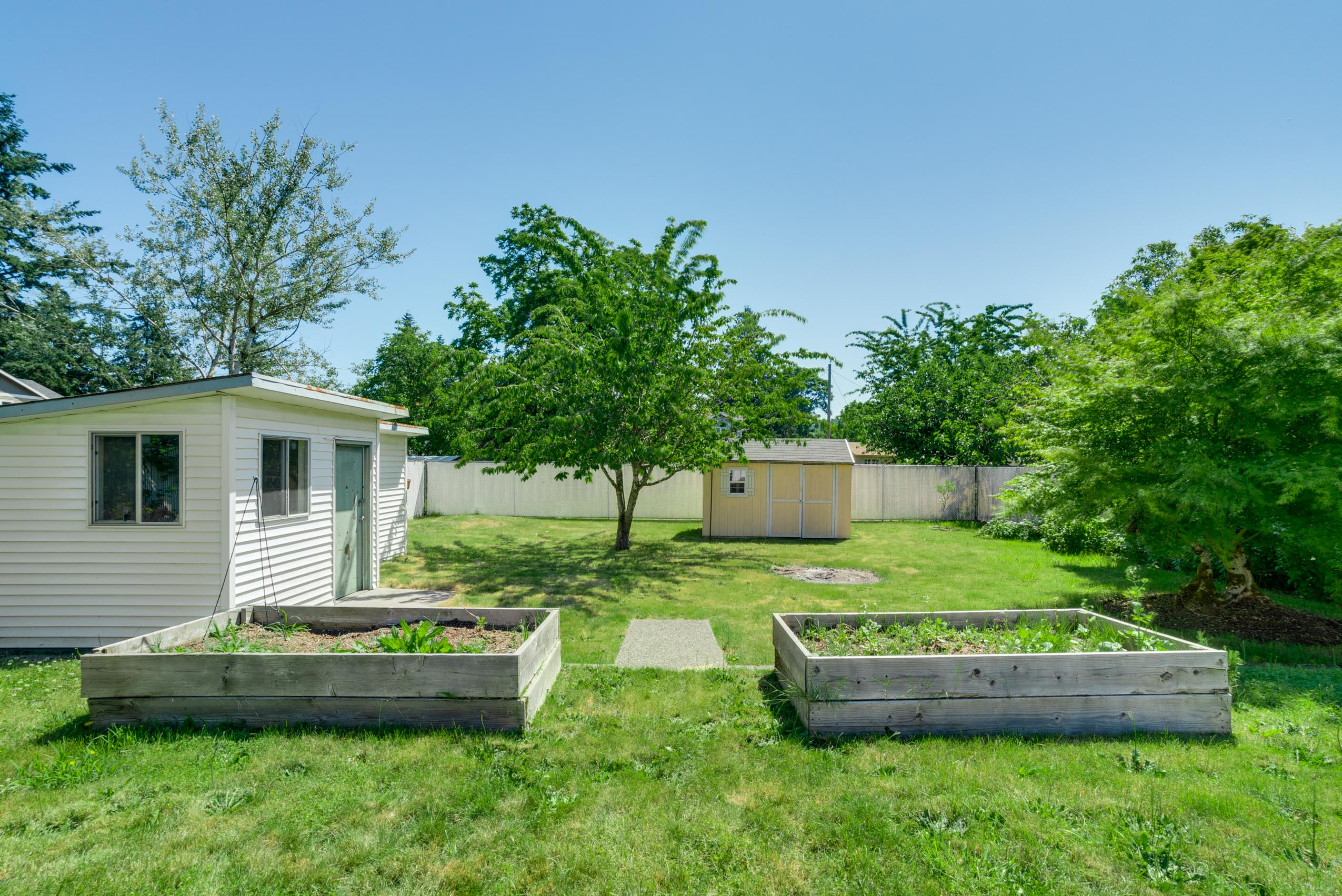 Light and bright bungalow on sunny parklike lot! Double lot is a gardener’s paradise with established fruit trees and plantings. Detached shed is ready for your imagination- home office, hobby or guest room? Build ADU? Inside discover original wood floors, stylish and fully renovated kitchen, updated baths, flexible floor plan with 5 bedrooms, or 4 and the master could double as a family room! Just 15 minutes to PDX. The seller loves her tight-knit group of neighbors!