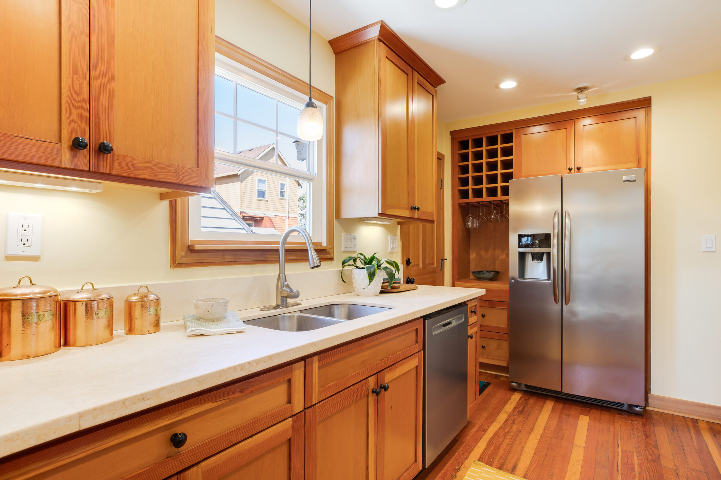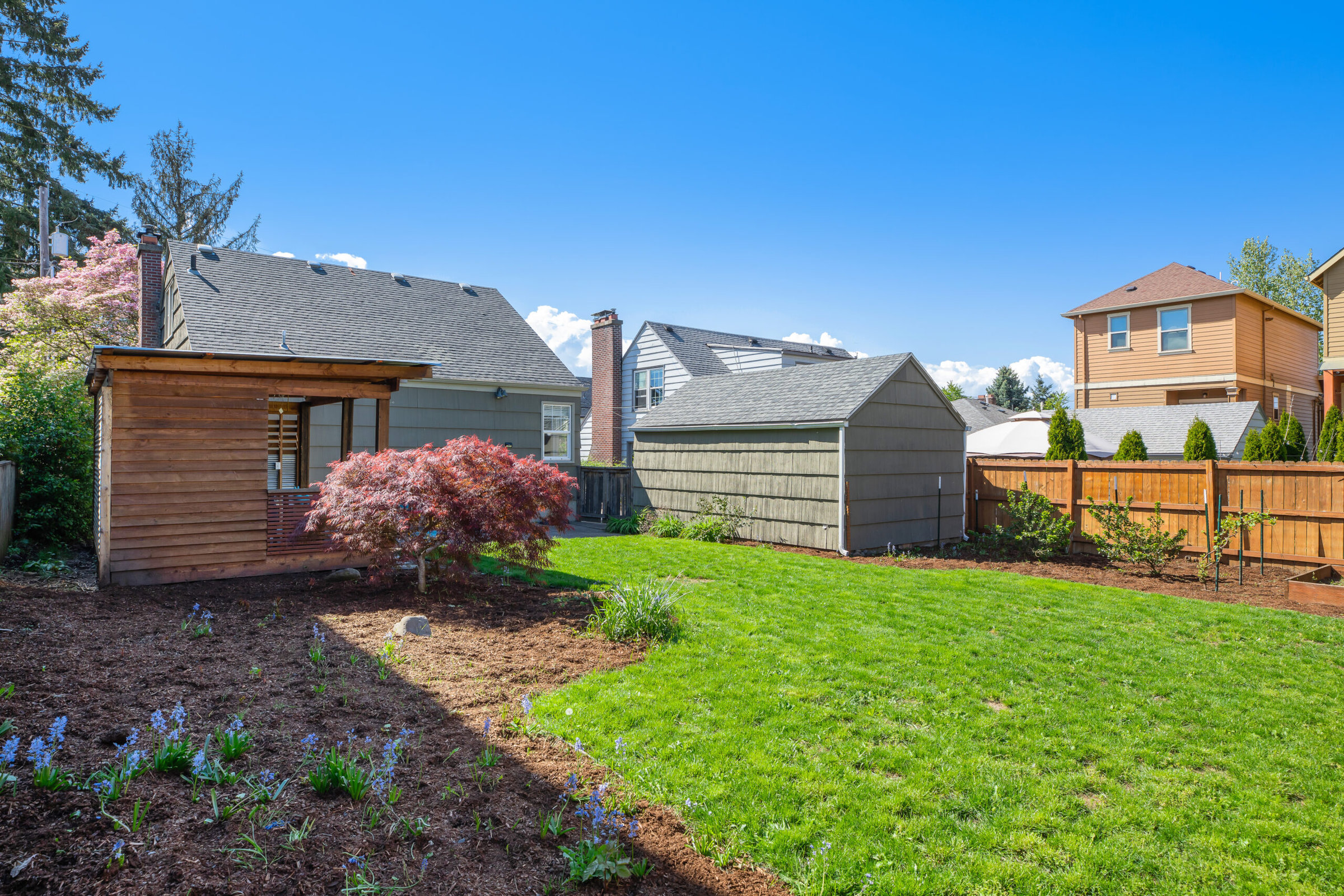 Only Audrey Hepburn is more timeless than this updated classic Portland Bungalow. Original details like mahogany wood moldings and trim, hardwood floors, brick surrounding the wood-burning fireplace and original tile. Home completely updated in 2020 to indulge all your modern comforts. Two spacious bedrooms on main floor, subway tile in bath. Kitchen has stone countertops, stainless steel appliances, gas range, beautiful hardwood cabinets and a wine storage nook with hanging wine glass storage. Dining room connected to the living room for modern living and surrounded by windows flooding the home with light to support your house plant obsession. Fully finished basement complete with spacious family/media room, extra-large bedroom that features a walk-in closet and a full updated bath for guests; perfect for media room, flex space, or multi-generational living. Upstairs is large primary bedroom with built-in bookshelves and room for a sitting area. Huge backyard is fully fenced and boasts a gazebo perfect for entertaining. Pinot Noir grape vines planted along the back of the lot with raised vegetable beds, beautiful trees and flowers. The front yard is shaded by the most glorious dogwood tree you’ve ever seen! Park your RV or boat in the extra long driveway and store all your recreational gear in the one-car detached garage… or, convert the garage to an ADU for extra income! Buyer to do due their diligence. Brand new Arbor Lodge Community Garden right down the street! Super convenient location nearby everything–New Seasons, Fred Meyer, Kenton and all the fun N Portland has to offer!