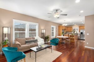 Craftsman style details adorn this stunning and surprising space, perched high off the street. 9 ft ceilings throughout the open main floor with hardwoods, gas fireplace, granite-topped island,gas cooktop, and stainless appliances. Master suite has cathedral ceiling, walk-in closet, and loads of natural light. With 3 additional bedrooms, a fully fenced backyard, and attached garage with storage + workshop space… this home has it all!