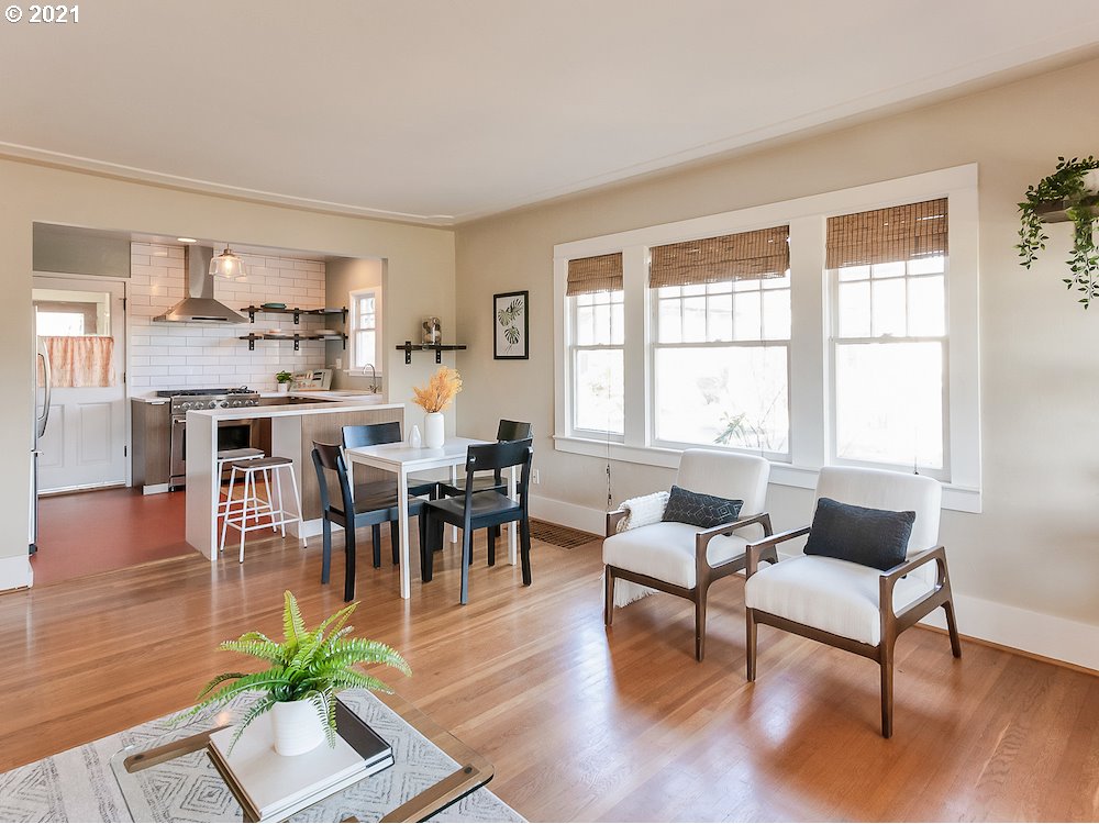 Boasting bright cheerful windows, this cozy 1920’s bungalow offers the best of vintage charm with durable modern materials. The metal roof, quartz countertops, and contemporary design merged well with the sturdy hardwoods, subtly ornamental ceiling, numerous windows, and inviting front deck.