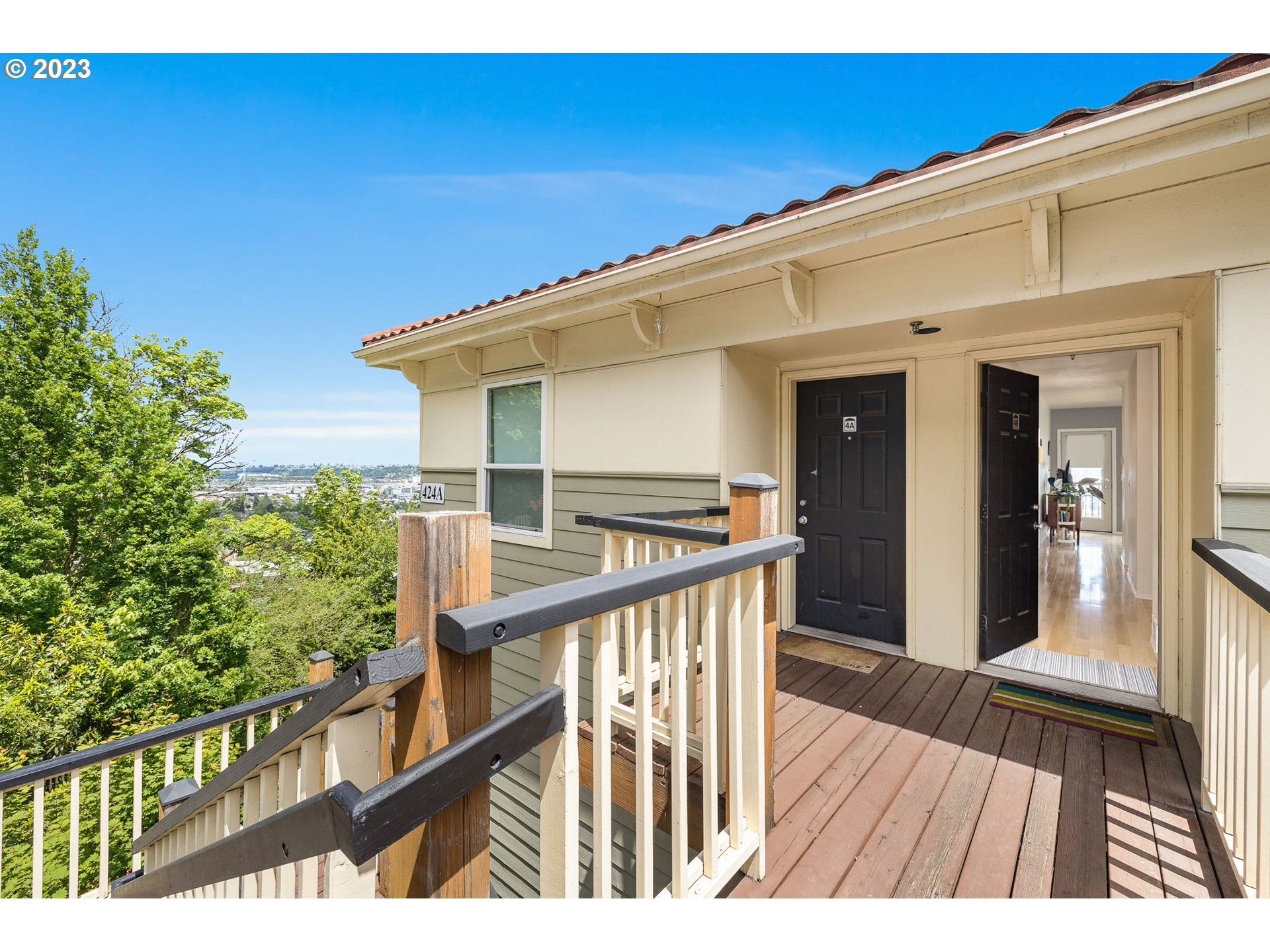 Enjoy morning coffee among the clouds with panoramic mountain and city views from your private deck at this amazingly located NW Portland condo. Light flows through the many windows giving the sense that this bright and stylish one-bedroom unit is floating above the city. The east-facing 180 degree views provide breathtaking sunrise vistas above mountain ranges. This lovely 1 bed / 1 bath unit sits just a half flight of stairs above the deeded parking space and features new hardwood flooring, a washer / dryer, and a bright open layout with a counter peninsula which is perfect as a breakfast bar or work area. A short walk to Washington Park and all the shops and restaurants on NW 23rd and the Alphabet District. This unit boasts some of the best views in the complex. You don’t want to miss this one!