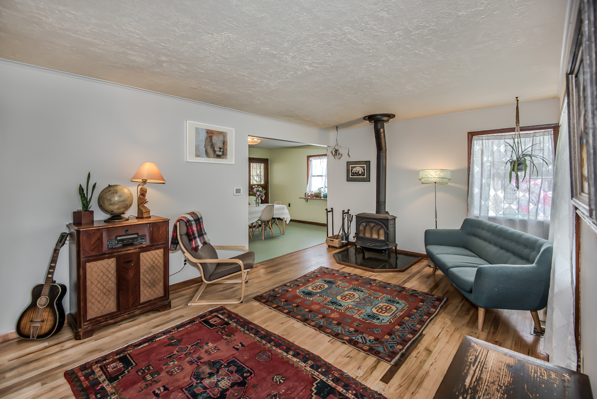 Inside this 1955 ranch style home find a main floor with a circular layout and hardwood floors, a beautiful remodeled kitchen with quartz counter tops, gas stove and a farm house sink. Alongside all this, a vintage style bath, a lovely livingroom including a warming woodstove, dining room with built in and 3 bedrooms. A Fully permitted finished lower level in2016 adds a family room with egress, large bonus room, bamboo floors, additional bathroom and laundry area. Out back a