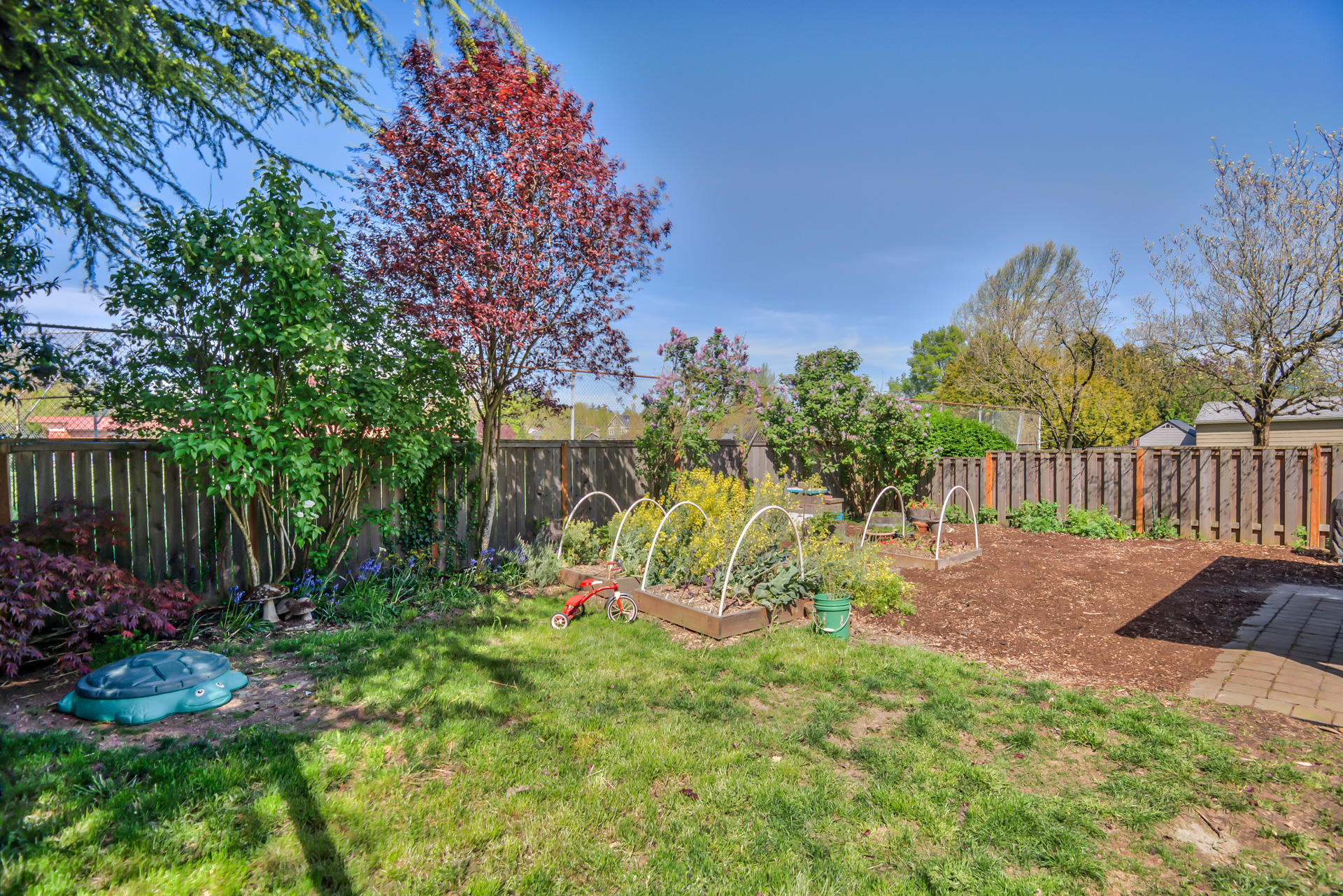 large fenced yard, patio and garden with room to play. Potential site to add a garage if you desired.