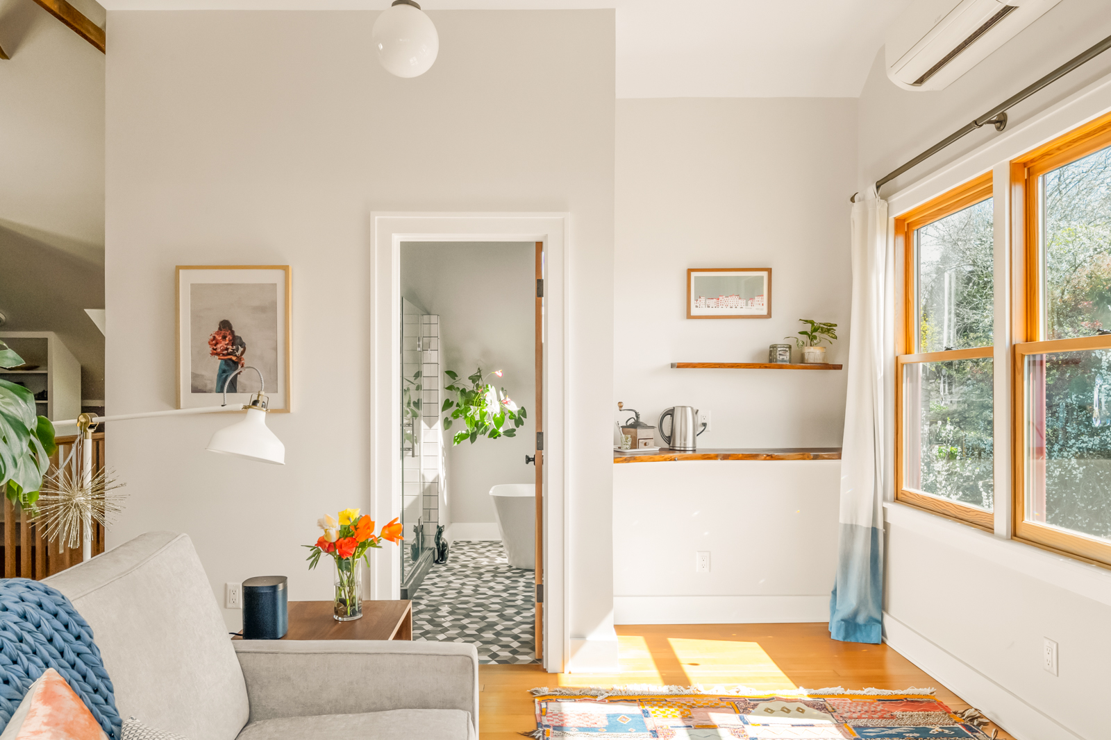 The nearly 1200sf basement has 7′ ceilings and exterior entries on the front and back of the house, with the front of the hosue door opening to an off street parking spot/driveway making it a perfect set-up for a future ADU. There is also a detached garage with wiring for more storage or parking a car. The house has thoughtful upgrades with energy efficiency in mind and all systems and mechanics- electrical, plumbing, sewer, 2 tankless water heaters, HVAC, decommissioned oil tank, newer roof, interior and exterior paint and and a solid foundation bolted to the house means all the heavy lifting is done. Located just a block away from hot spots on Gladstone to the north and Grout Elementary and Kenilworth park to the south and a few skips to Trader Joe’s to the east this incredible house is peerless.