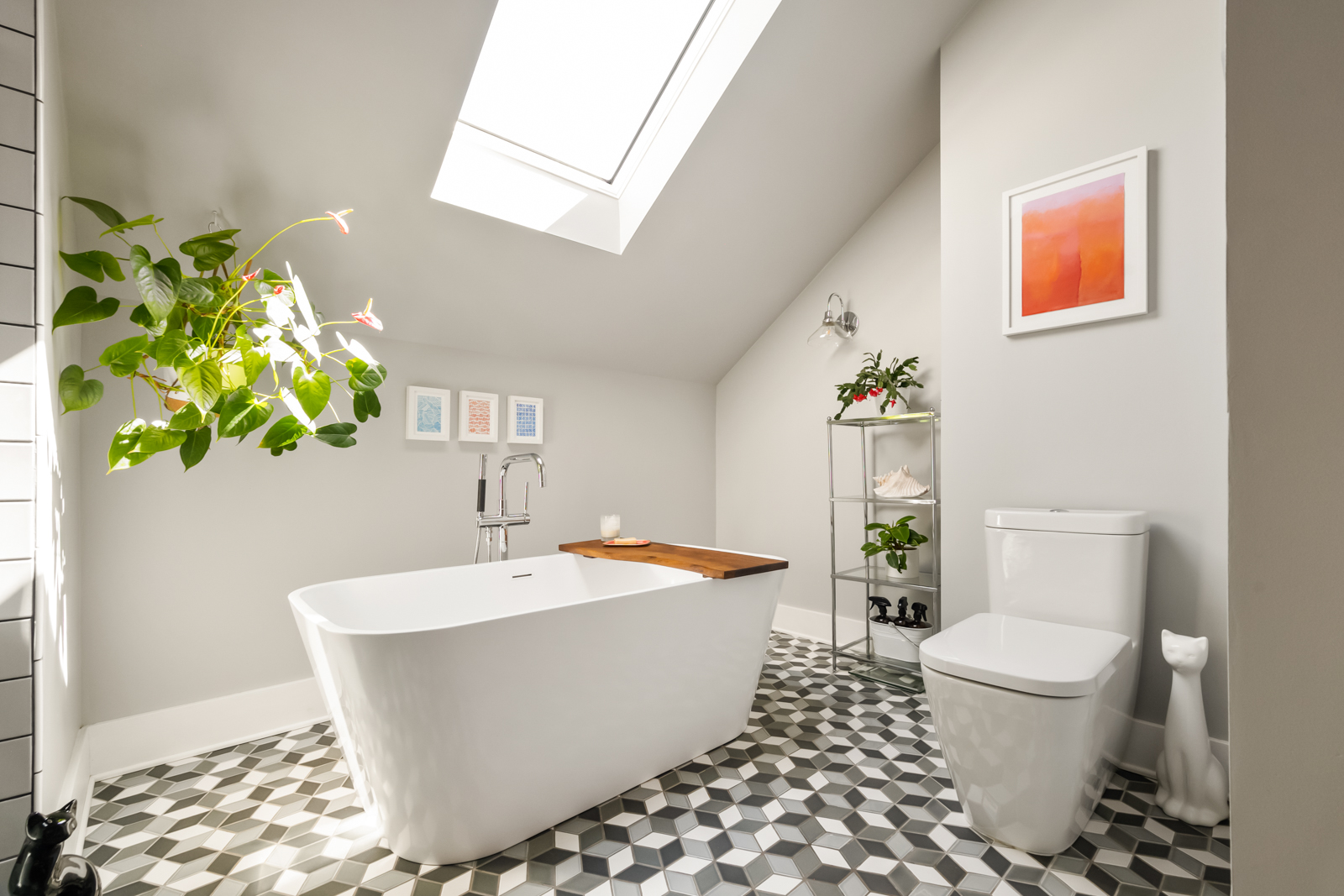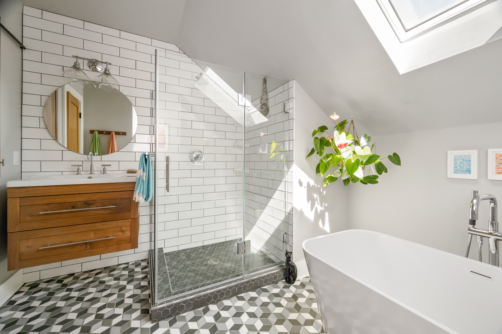 An unassuming door off the hallway opens to a whimsical staircase with each stair step a slow reveal to a magical primary suite. Be inspired by the soaring 13′ vaulted ceilings, windows that frame lovely views on four sides, an artful spot for a bed, sitting area, office nook with city views, coffee station, spacious closets and hidden areas all executed with a flair of creative genius in unexpected places. With heated tile floors, a skylight, soaking tub, and gorgeous glass shower, the ensuite bathroom is a slice of heaven. Once upstairs you may never want to leave.