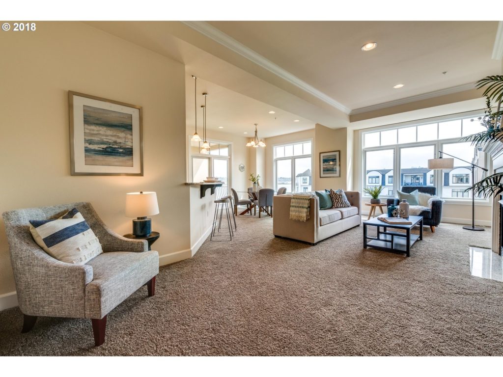 Enjoy spectacular views of the Columbia River from this stunning top floor luxury condominium. The open concept creates gracious living spaces along with a gourmet kitchen complete with granite countertops and upgraded stainless steel appliances and an inviting deck. Designer finishes, gas fireplace, tall ceilings, and walk-in master closet round out this gorgeous living space. Secure parking, close to walking/biking paths and marina.
