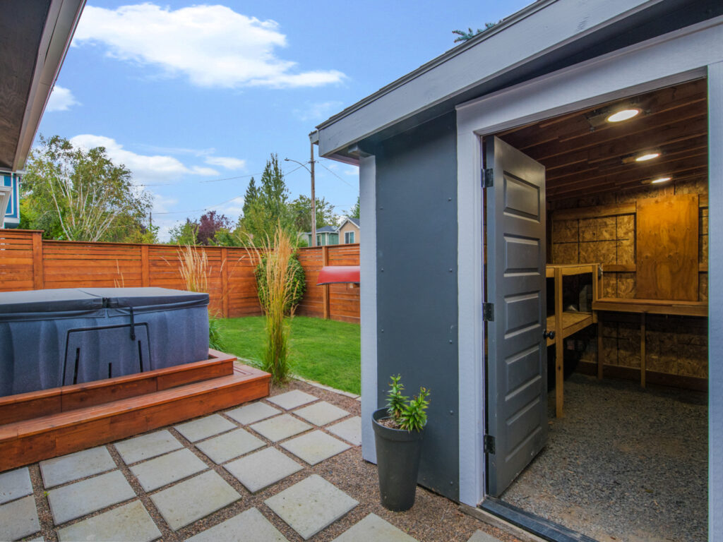 This spectacularly remodeled 3/1 shotgun home packs a punch. Fantastic updates abound inside and out with improvements including fully updated interior and exterior finishes, new roof in 2016, fridge and dishwasher in 2018, hot tub and AC in 2019, custom paint & shelving, acacia hardwoods, spacious attic storage, custom shed, 2 car garage, and RV parking all on a fully fenced corner lot with great access to St Johns’ offerings.