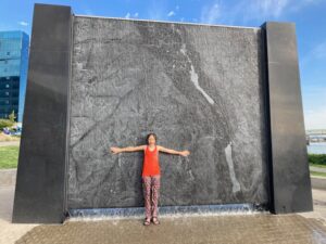 The views are astounding, there is a lovely water feature (reminiscent of Jamison Square Park in the Pearl), and beautiful rock sculptures engraved with equally beautiful words. A path along the water encircles the area, and it’s perfect for meandering on a sunny afternoon.