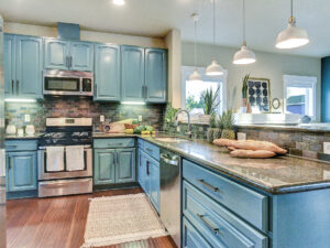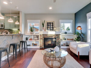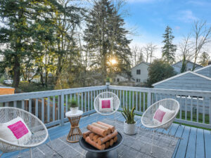 We worked on painting the cabinets and making a couple other small improvements to the property. This home was a bit of a challenge to sell just due to the lack of a yard, although there was a ton of beautiful space on the outdoor decks. I suggested really highlighting the decks with staging, and it made a huge difference.