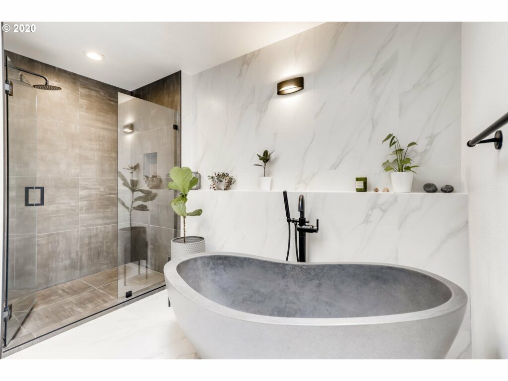 From the light oak front door to the fresh white paint & white oak floors throughout the home, everything has a zen like feel. The spaces are bright with tons of natural light – perfect for growing a plethora of plants. The master suite is it’s own special sanctuary with a remodeled bathroom and doors to the patio. The kitchen has been refreshed with marbled quartz counters and new appliances. The modern style of the home is everything that the Wood’s wanted.