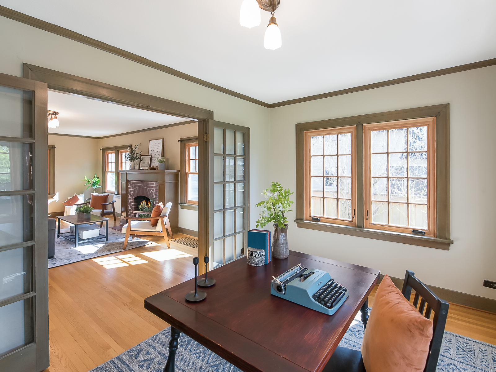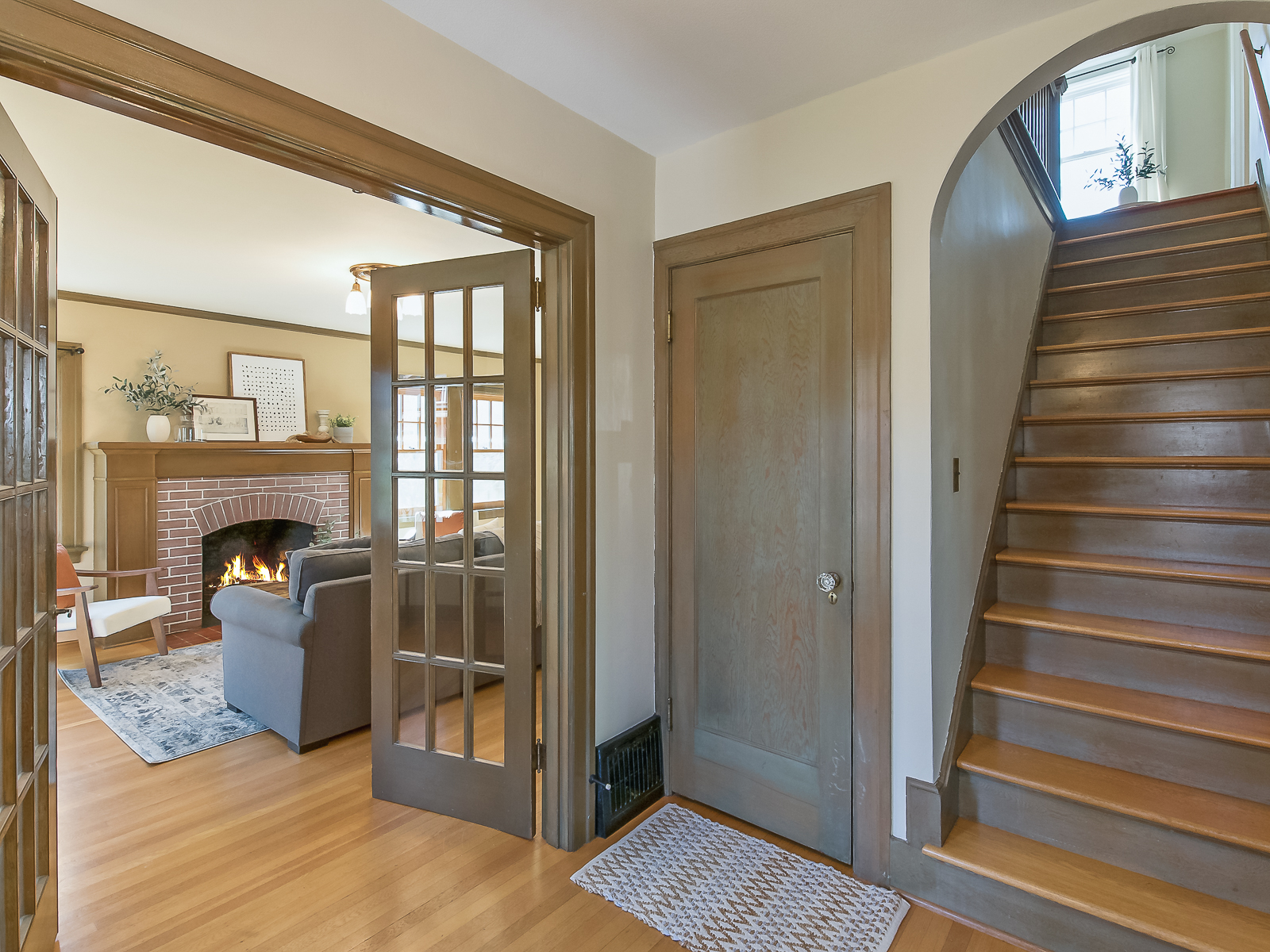 Step from the intimate front porch into the well appointed vestibule and you’ll immediately