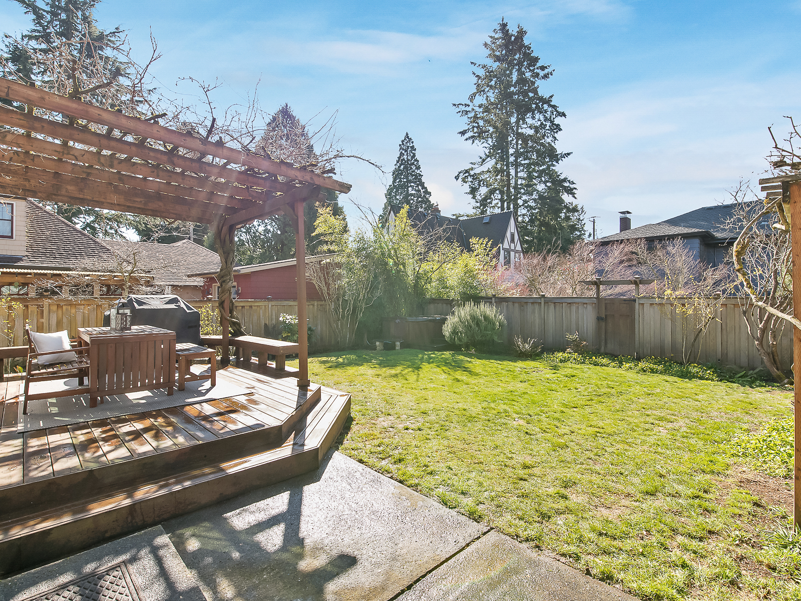 Or spend those beautiful spring days under a canopy of wisteria on the back deck overlooking the maturely landscaped yard.