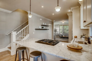 Gorgeous attached home boasts 9″ ceilings, a custom kitchen with marble countertops, hardwood floors throughout, radiant heat, 2 bedrooms with luxurious ensuite baths. Enjoy summer nights on the stunning 550+ sq ft rooftop deck with sweeping views towards downtown. A separate ground floor one bedroom apartment can be a home office, guest suite or provide rental income (currently rented for $1250/mo). Walk to parks, public transportation, local shops, restaurants and so much more! Walkscore 91.