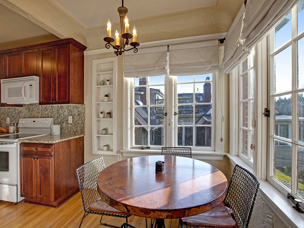 Gorgeous one bedroom corner unit in Northwest Portland. Vintage details include woodwork & mouldings, hardwood floors, coved ceilings & period lighting. Sunshine everywhere in this South facing unit. Designer kitchen w/granite, beautiful dining area & in-unit laundry. Tiled bathroom, large bedroom & additional built-ins for storage. HOA dues are $316/month. Two blocks from shops, dining & transit. Home in Portland’s historic Nob Hill neighborhood.