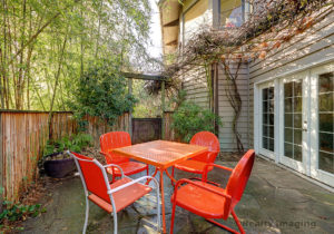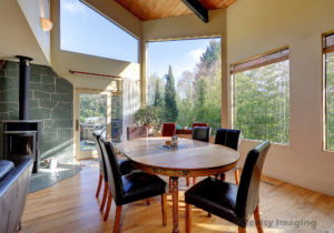 248 NW Seblar Ct is in many ways my ideal house. Every room opened out to it’s own Japanese influenced garden. High ceilings with huge windows kept you in touch with what was happening outside but a fireplace and a wood stove kept you warm and secure. A generator kept all systems running should the weather knock out the power, as sometimes happens at this elevation above the city. The home has a serene feel from the extensive use of wood and stone: big solid beams, tongue-and-groove cedar ceilings, oak and stone floors. Distinct intimate spaces to read, craft or play piano opened to each other for large groups. A few steps allowed the house to follow the lines of the gently sloping site. The artful gardens opened to each but still gave privacy for each of the rooms they were connected to. A unique 20′ tall greenhouse provided space to shelter delicate plants in the winter and to get an early start on seedlings. An oversize garage with a loft provided lots of space to do messy projects.