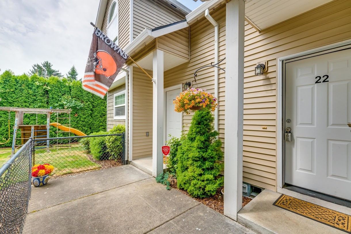 Wonderful updated sun-filled townhome with modern open layout, excellent for entertaining. Bright dining & living room with fireplace & sliders to private fenced patio. Spacious kitchen w/ ample storage, vaulted ceilings & large master suite w/ bath & walk-in closet. 2 parking spaces, 79 bike score.