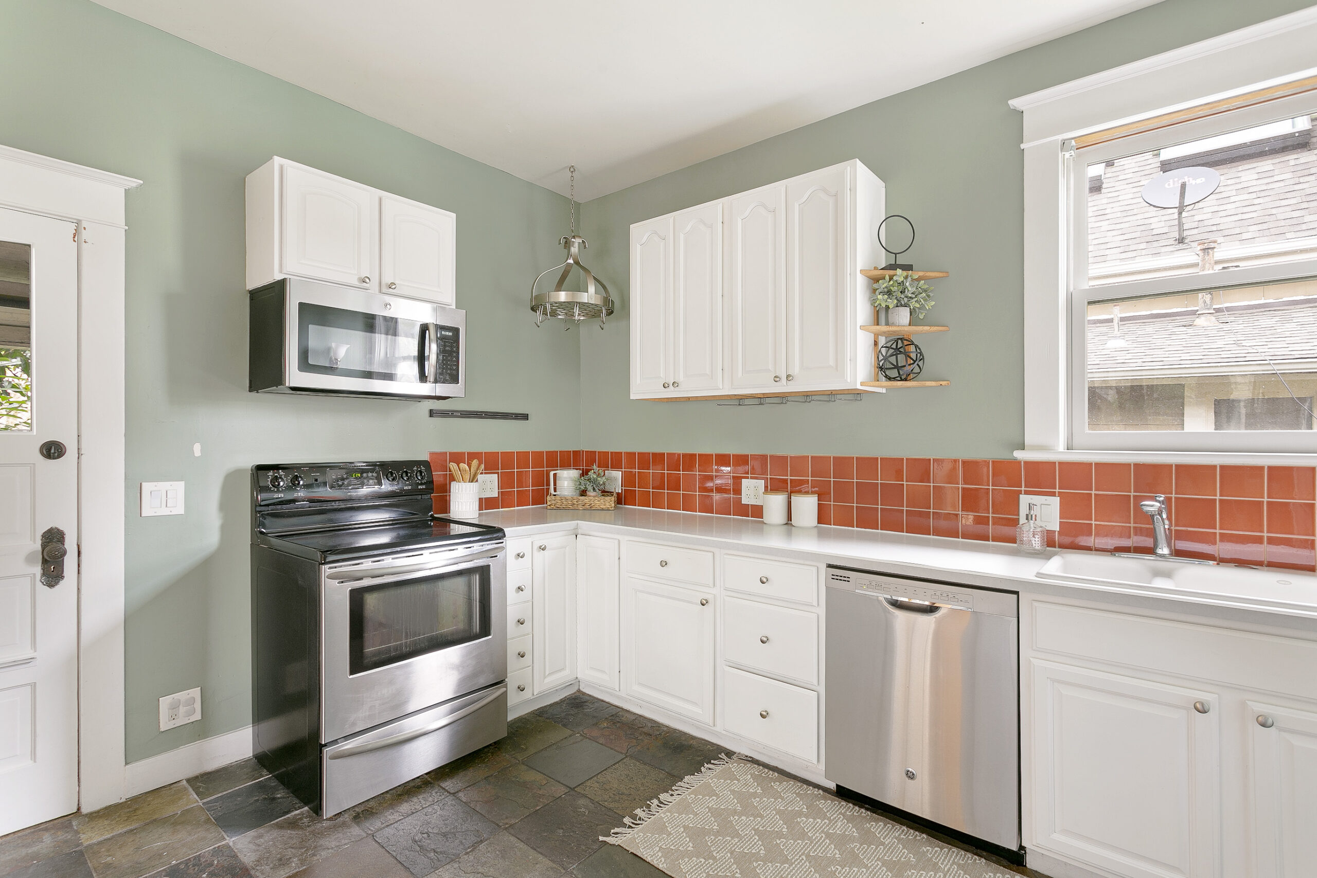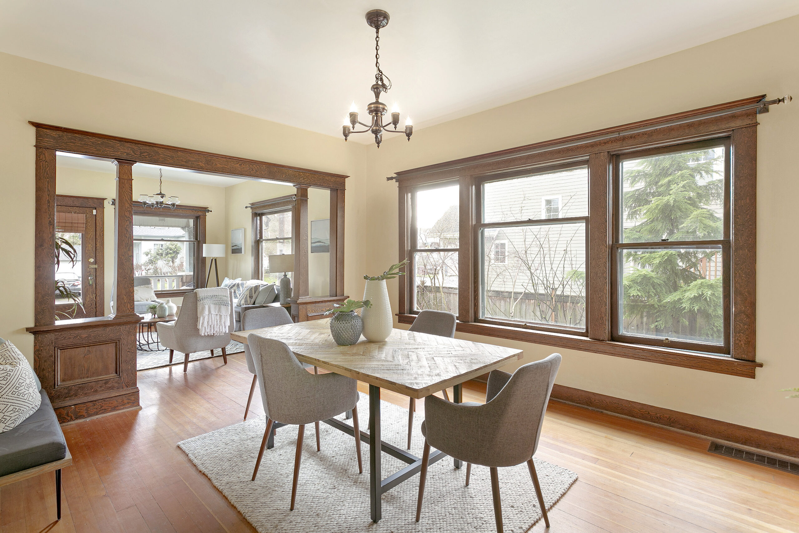 Perched above a quiet street just a short stroll to both Hawthorne and Belmont, this home offers the best of both worlds: peaceful surroundings, with the fun shopping and dining spots Portland is famous for at your fingertips. Step inside and you’ll find an open layout with high ceilings, charming vintage built-ins, and huge windows that bring in the sunshine even on rainy days.