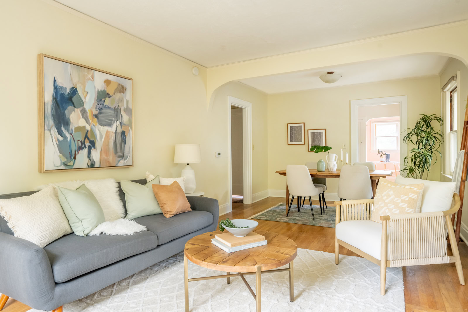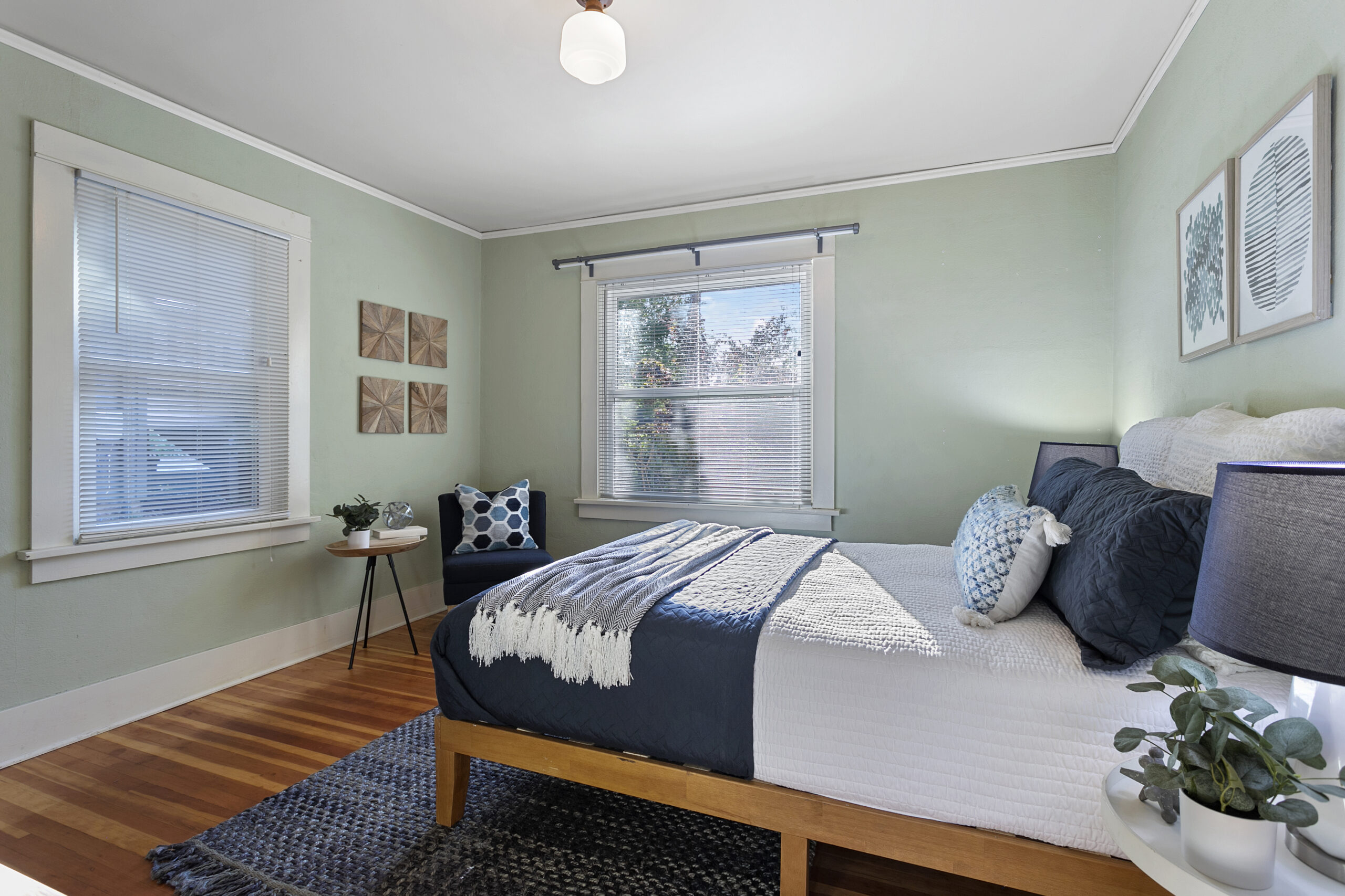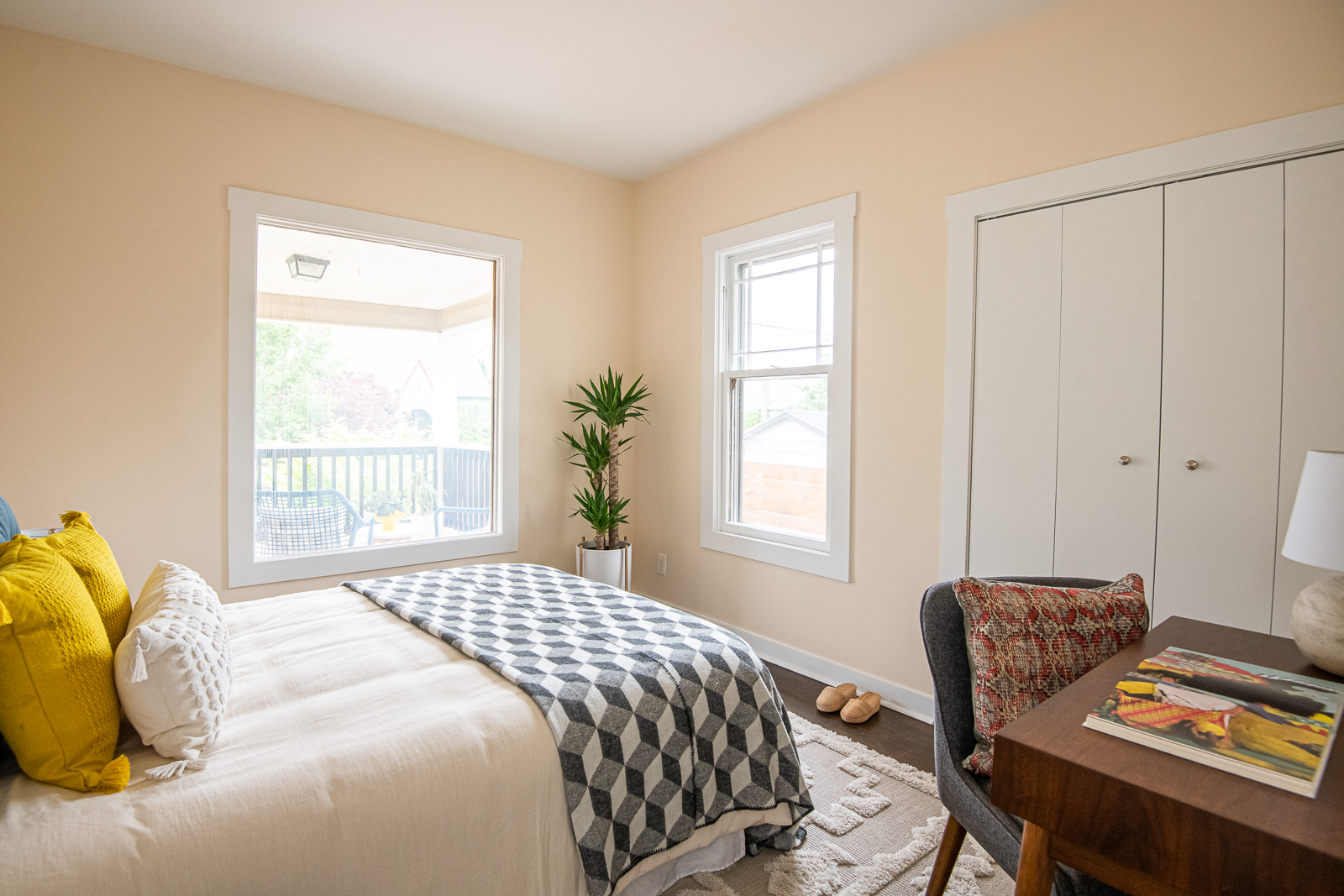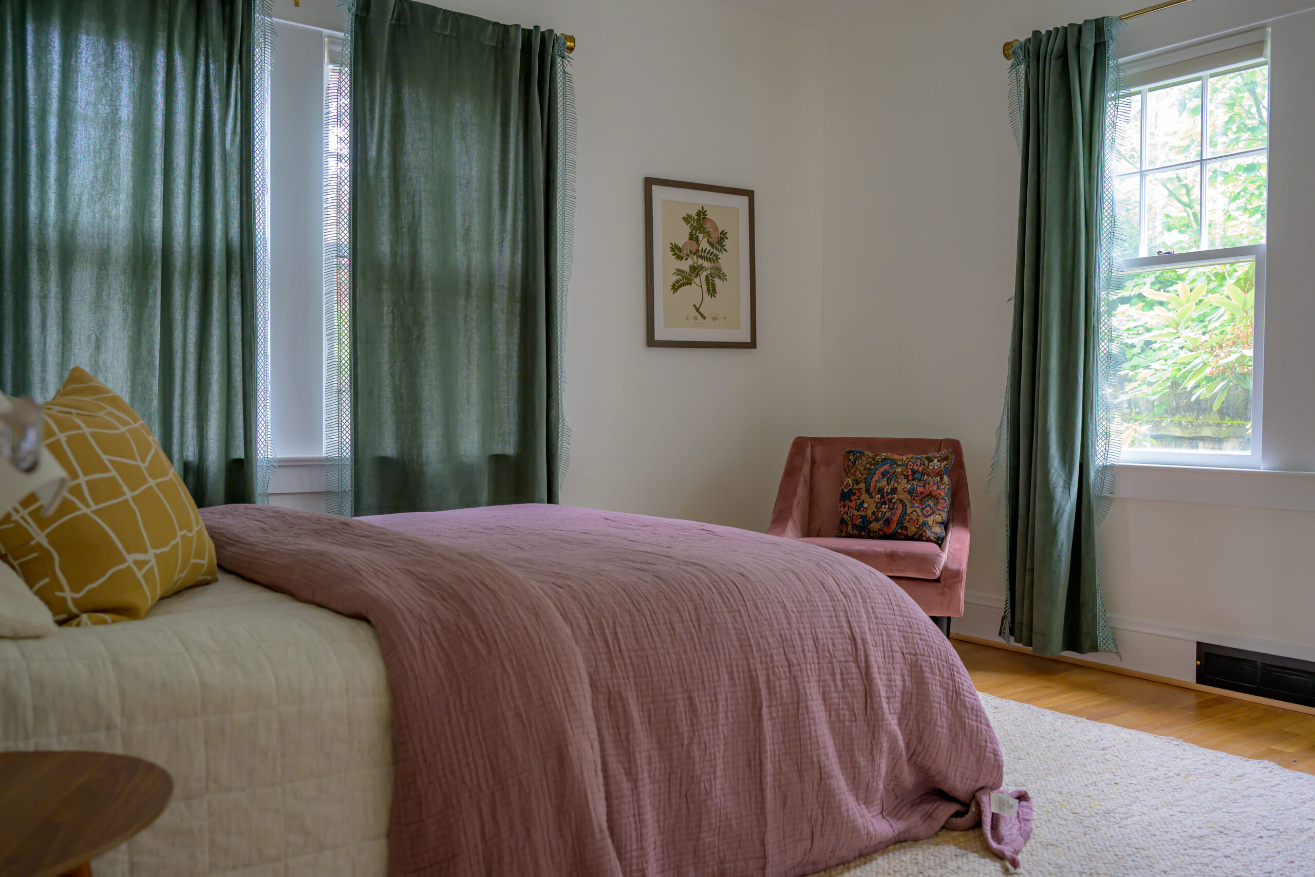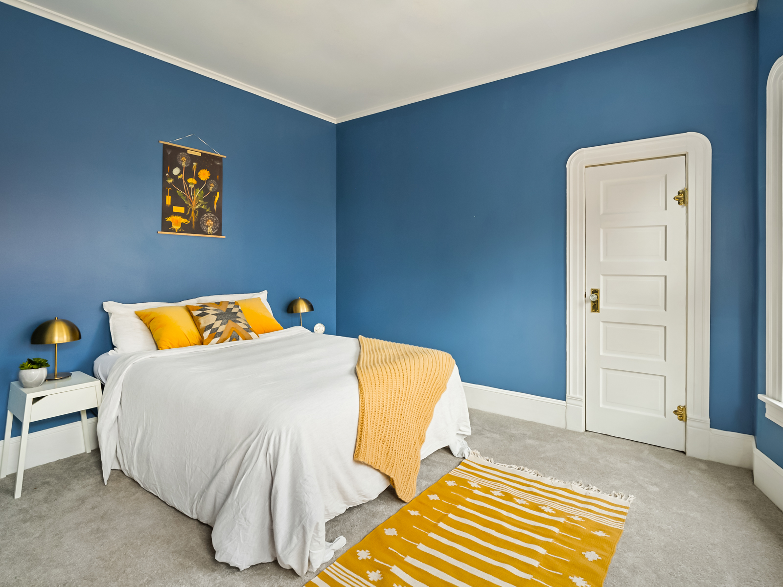 I think the most important tasks to achieve this goal is painting. I really think most rooms should be painted a color. Even if it is soft or subtle, choose a theme or sets of colors that the room will feature. Sometimes, the walls can be white or cream and the trim can be accents, or leave the pops of color for your bedding and art. Either way, make sure you are thoughtful about the choices. Don’t just throw up a blank shade of white and say “well everything goes with it.” It’s wrong and lazy. Sometimes white can be the statement itself, like in a mid-century with warm toned wood paneling or bold furniture choices. Above all, avoid grey. Especially in places where it is grey outside. Or, places where it is always sunny, because then it draws even more attention to its drab-ness.