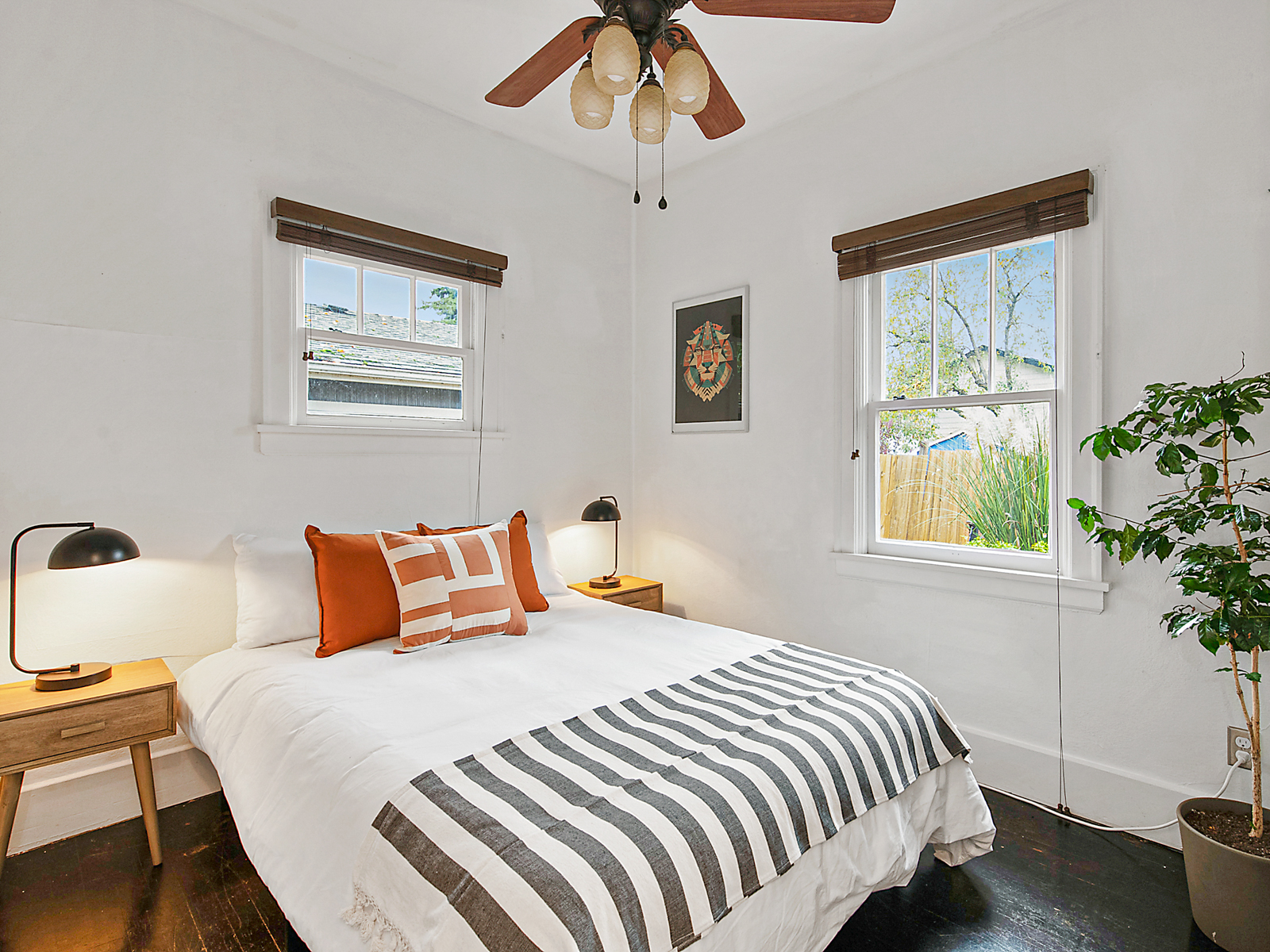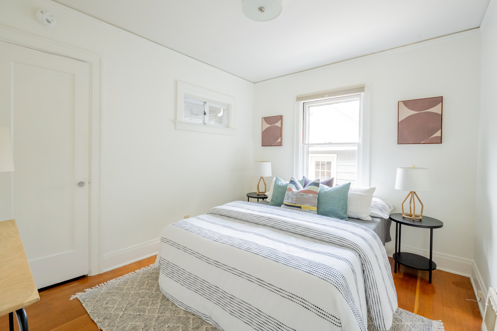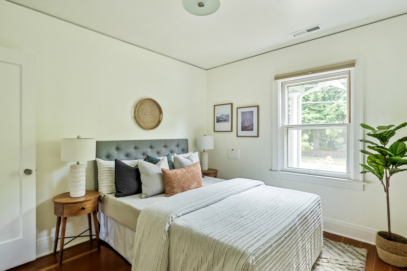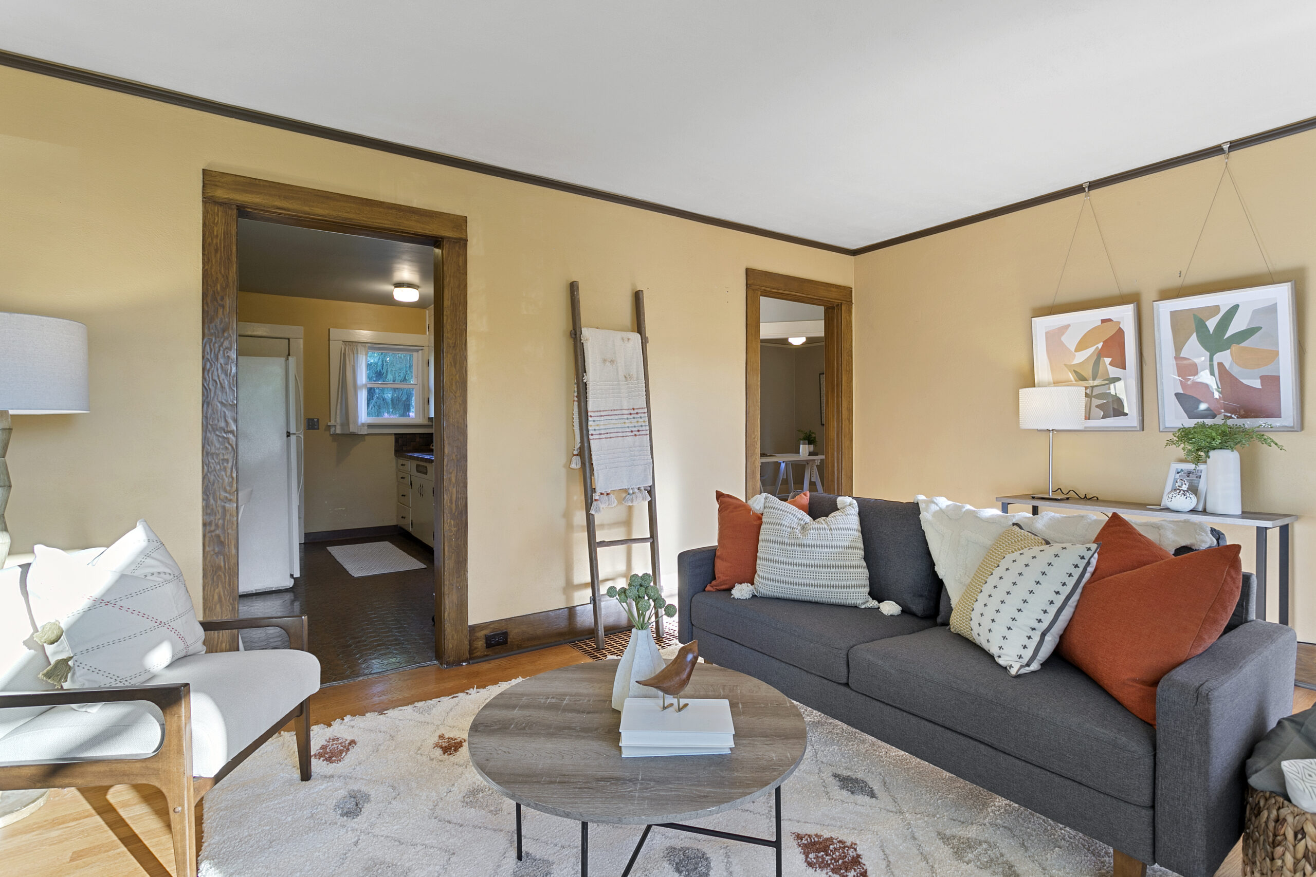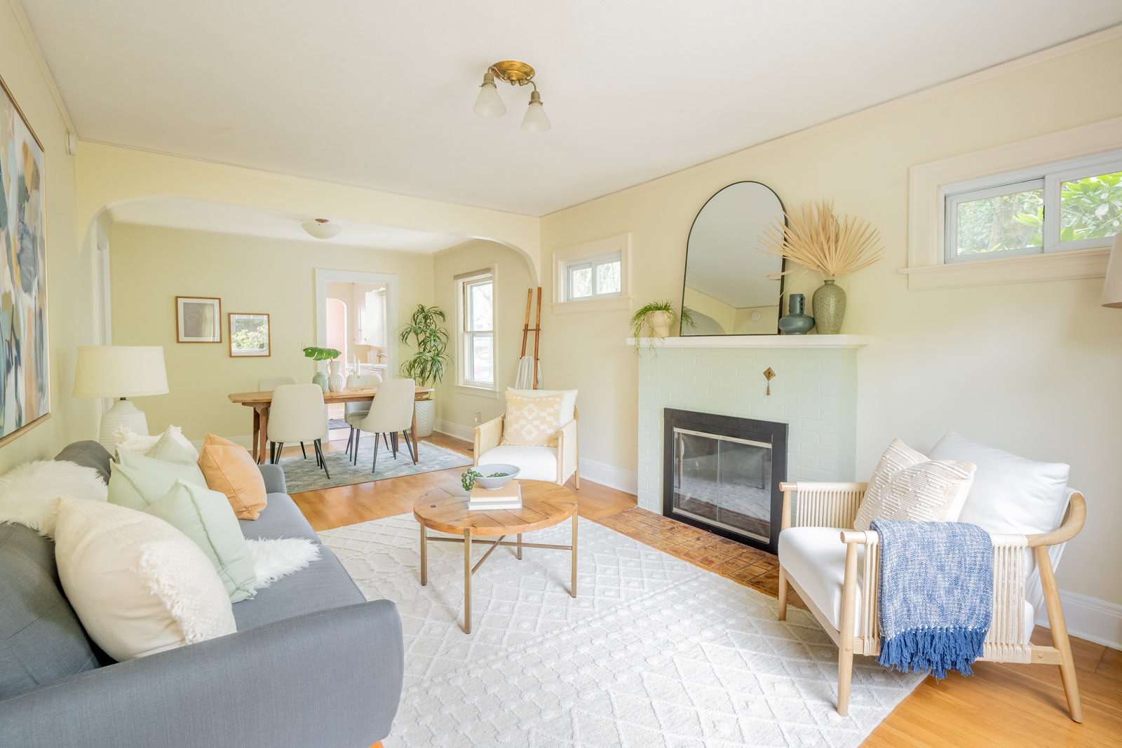 I think the most important tasks to achieve this goal is painting. I really think most rooms should be painted a color. Even if it is soft or subtle, choose a theme or sets of colors that the room will feature. Sometimes, the walls can be white or cream and the trim can be accents, or leave the pops of color for your bedding and art. Either way, make sure you are thoughtful about the choices. Don’t just throw up a blank shade of white and say “well everything goes with it.” It’s wrong and lazy. Sometimes white can be the statement itself, like in a mid-century with warm toned wood paneling or bold furniture choices. Above all, avoid grey. Especially in places where it is grey outside. Or, places where it is always sunny, because then it draws even more attention to its drab-ness.