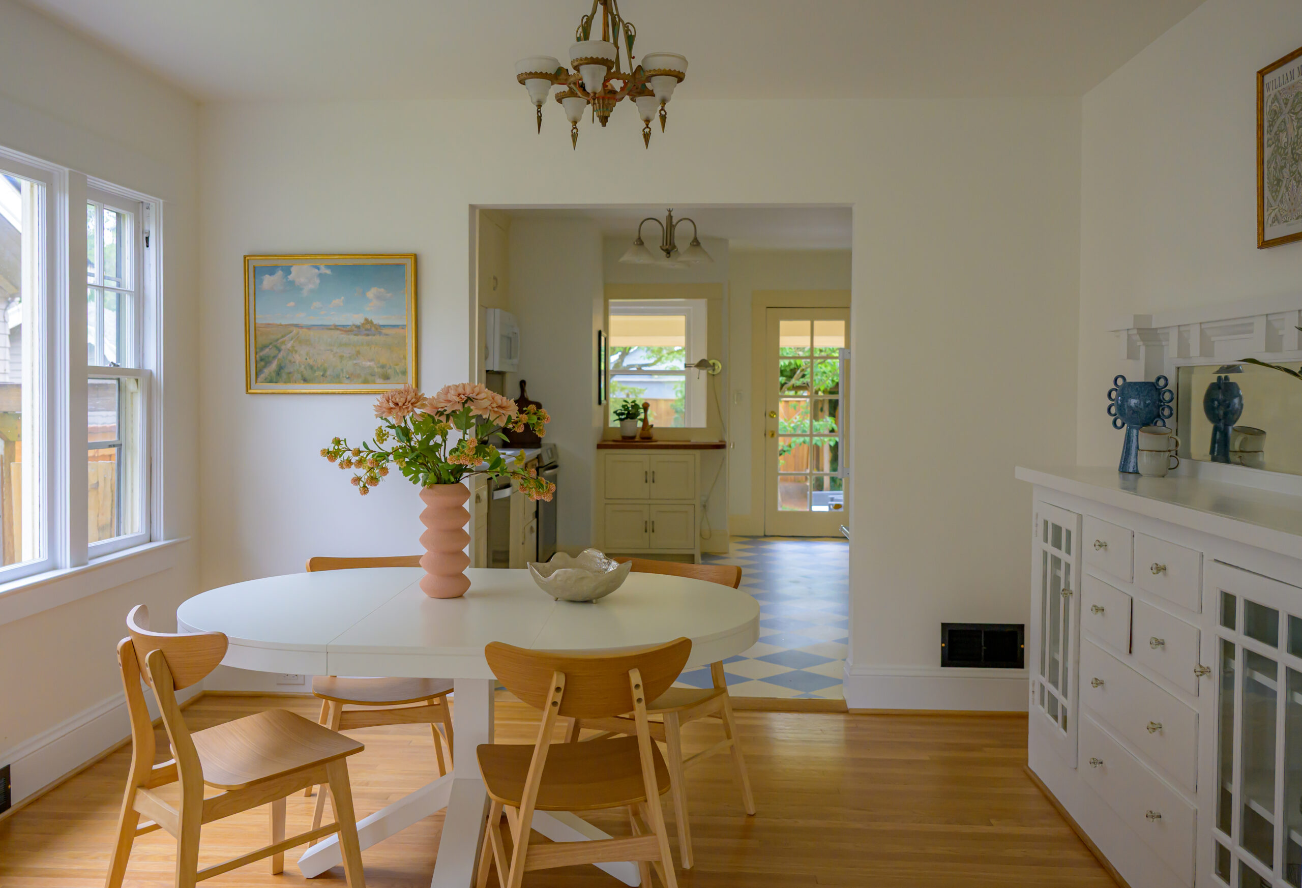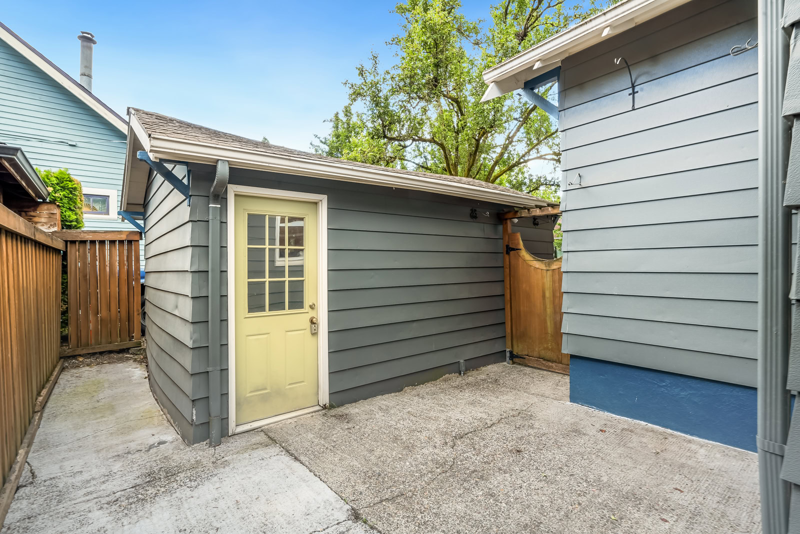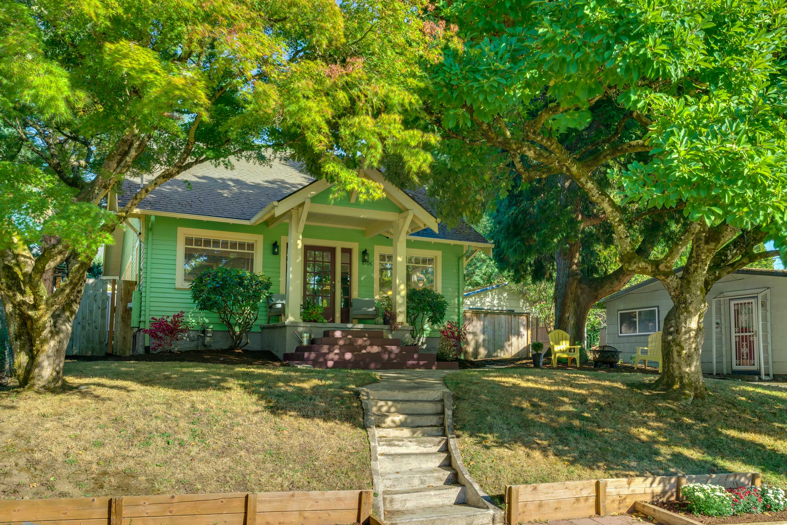 Ever stroll down 13th avenue in historic Sellwood and think “I’d sure love to live here”? Ever wander past the rows of perfect turn-of-the-century houses, painted out in bright colors and feel painfully covetous? Ever wish you too could own a piece of history, a period-perfect home that lovingly retains its vintage aesthetic? Perhaps you saw Season 8 Episode 5 4:00 of PORTLANDIA (the parallel parking scene) and caught a glimpse of this beauty itself? Well this is your chance to own one of your very own! Right in the heart of Sellwood, amidst the shops and cafes, on a quiet tree-lined street just a block from the library and another two to the park, sits a stylistic example of “Porch-Gable” bungalow design. Featured in Architectural Historian Thomas Hubka’s article “Sellwood’s Boom Era Houses”,