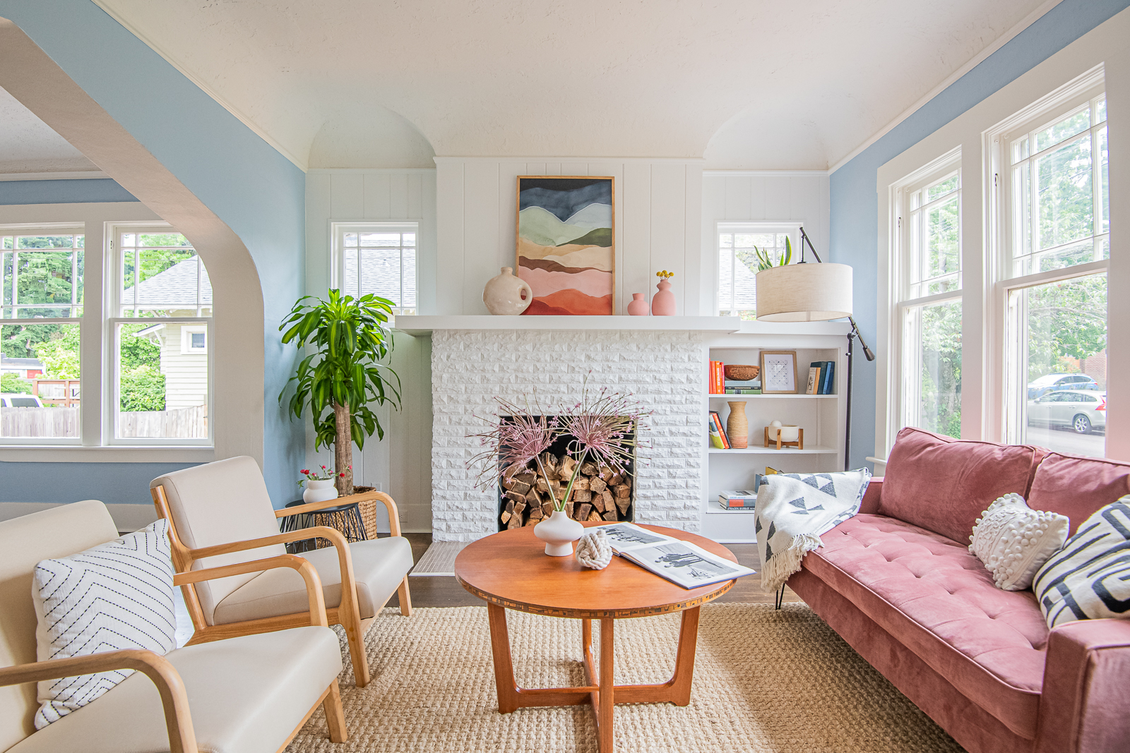 I look at the photos and I am so happy. I had been envisioning it like this for the past four months but it still feels crazy that it is real. I’m actually kind of obsessed with the power of manifestation now I guess! Even though I LOVE minimalist spaces, something about seeing my imperfect, loud, quirky, busy, hectic home being featured brings me so much joy. On the cover, there’s still dog hair on the rug. The fake ADT sticker I have in the window is still there. My annoying dogs are featured doing their usual annoying things (Poppy, clinging to me from anxiety. Roux being aloof. Clover chewing on something so she doesn’t bite or bark).