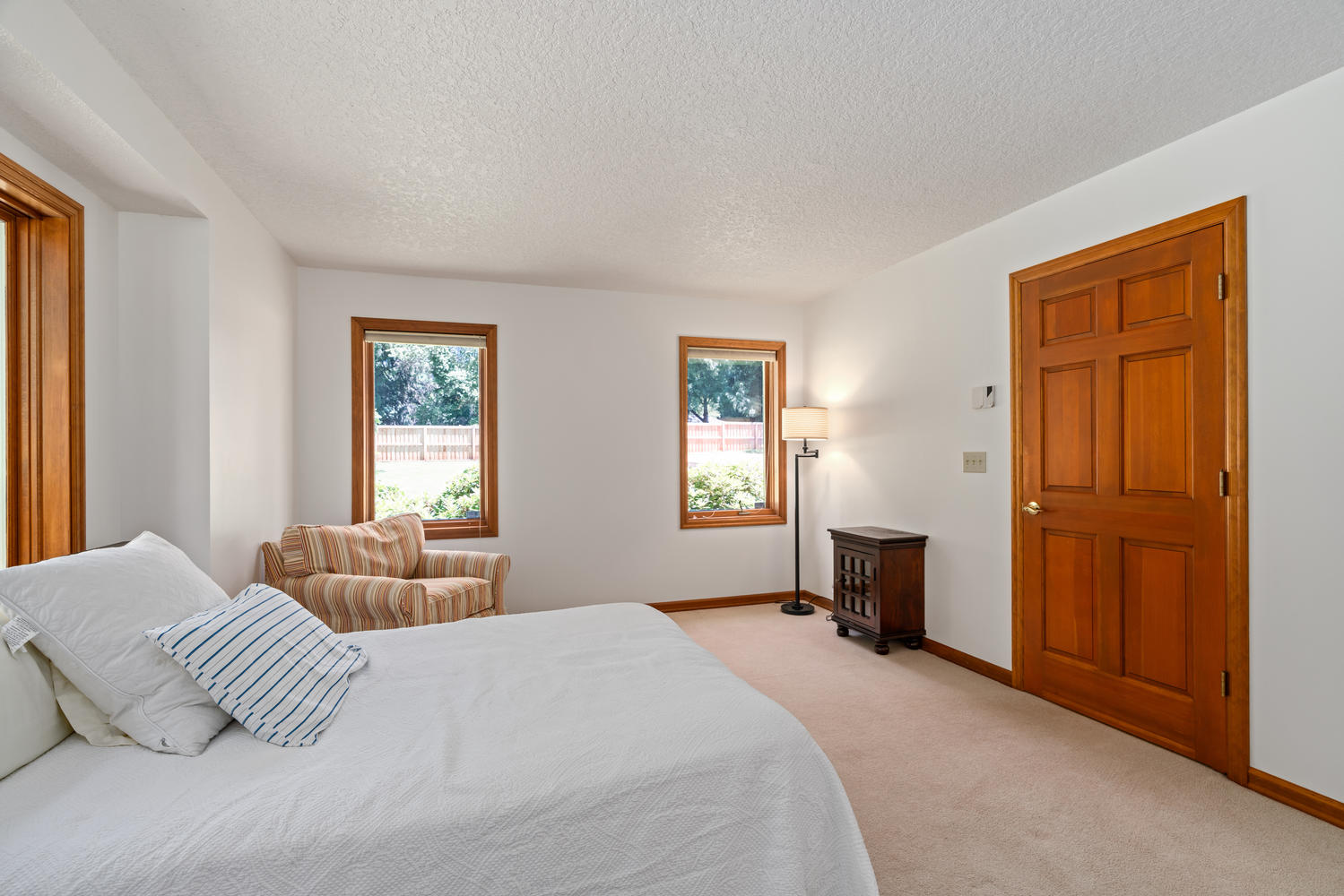 The second floor is home to two large bedrooms, a third full bathroom and a beautiful sitting room with a bird’s eye view of the formal spaces below. Clever storage, beautiful tile work, built-ins, solid core doors and dual pane wood windows round out the second floor and speak to the custom design attributes applied by the original owners.