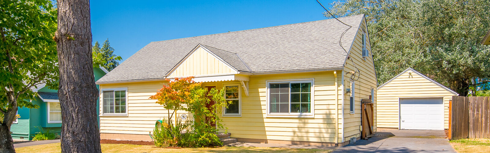 So cute they moved it! Purportedly moved to its current site in 1950, this circa 1930-40’s cape cod was previously in the path of the local Fred Meyer grocery and was obviously kept for its cuteness. This home just oozes period details — from the coved ceiling with picture rail, the ogee archway to the kitchen; the clapboard exterior siding with scalloped trim; to the speak-easy peephole in the decorative door. Gently updated with a few modern perks such as an open plan living room; modern plan kitchen; the master bedroom on main with en-suite bath and walk-in closet; a main level laundry area; and a second bedroom on the main floor. There’s a spacious upstairs area with a 13×19 bedroom and a 13×22 bonus room/office/den. The yard is fenced with an over-sized 1 car garage, RV pad, and a large rolling lawn – a clean slate for your landscaping dreams.