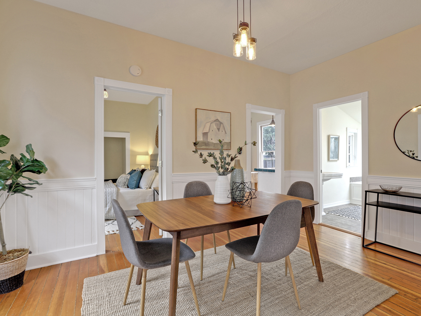 Sweet fixer opportunity in vibrant Humboldt! This bungalow has only been on the market four times since it was constructed and is chock full of charm and Old Portland good vibes with features like original wood floors, inlaid tile, handcrafted millwork, and a unique backyard cordwood sauna. The main floor features a spacious living room, comfortable bedroom, and charming dining room that was previously an additional bedroom and may be able to be converted back.