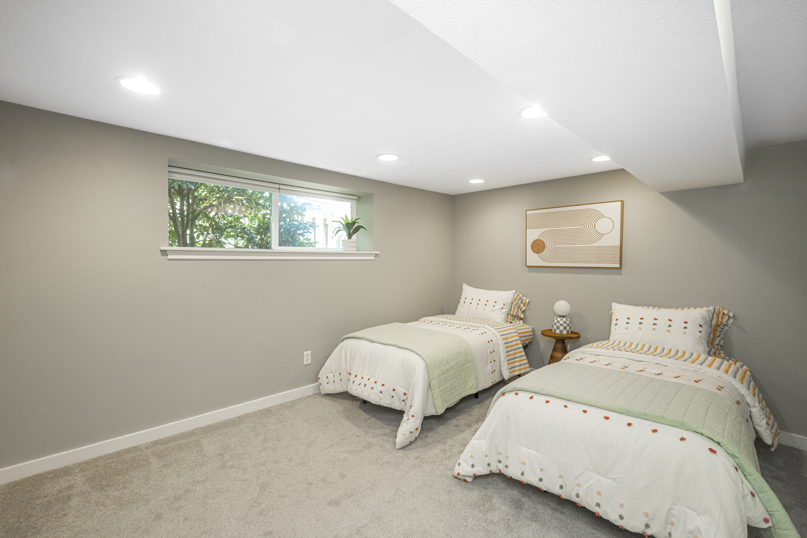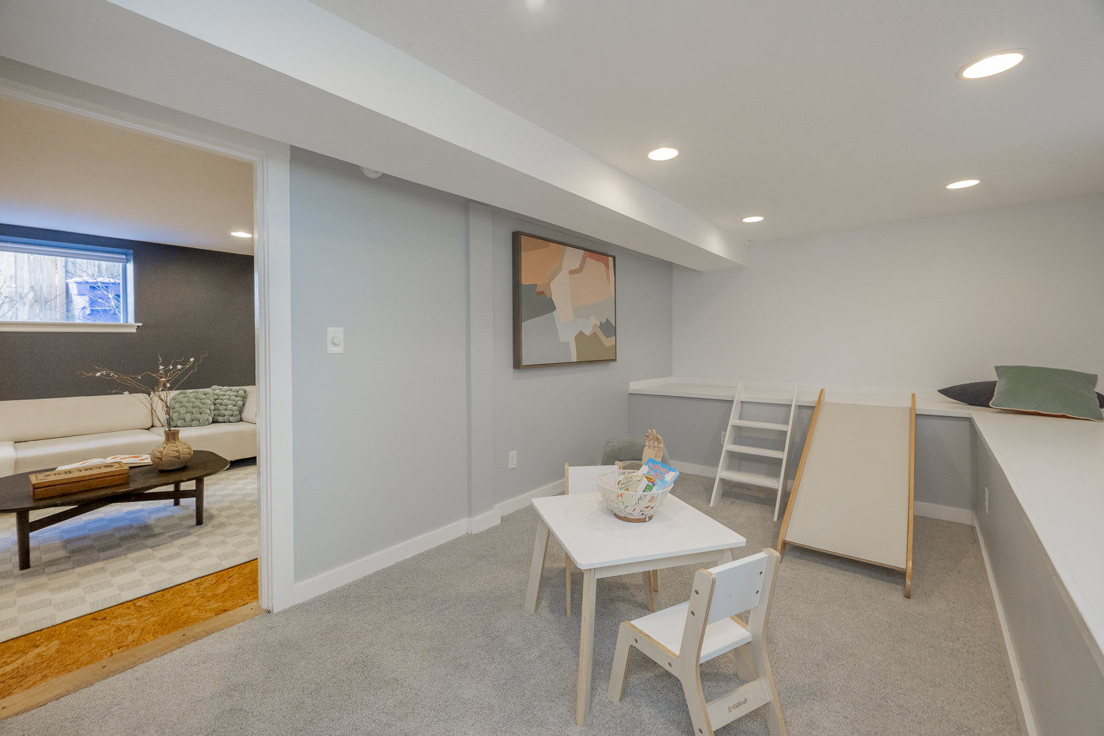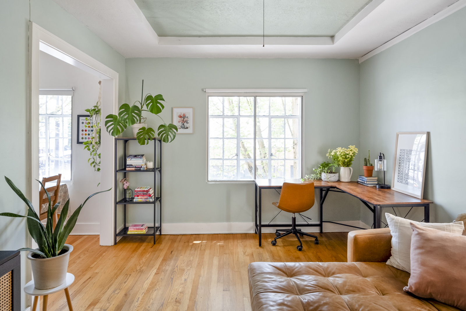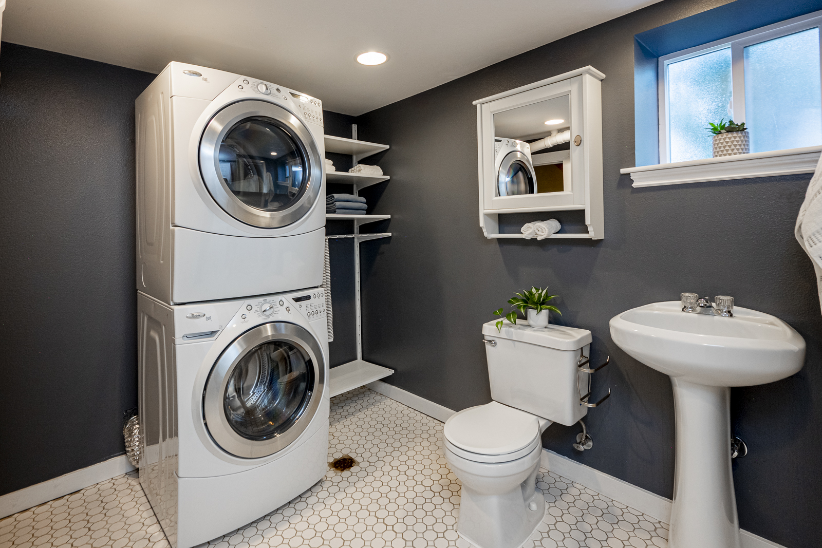The spacious living room opens to a comfortable dining room and an updated kitchen, featuring a back door that leads outdoors to a gated area. Upstairs, you’ll find two spacious bedrooms, each with a walk-in closet, and a beautifully updated bathroom featuring a jetted tub, era-appropriate finishes, and a convenient washer and dryer.