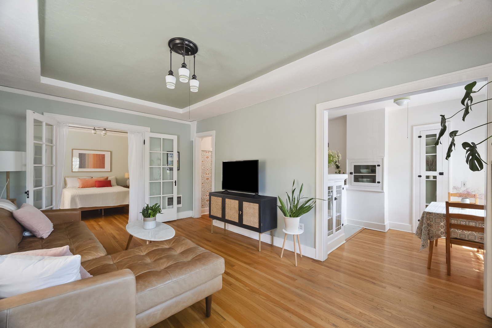 Located a few short blocks from Whole Foods, Trader Joe’s, and the well-loved Hollywood Theatre, you’ll find this gated, quiet complex that feels like it’s in a world of its own. Step into the courtyard and immediately notice the lush landscaping, stunning Magnolia tree, and multiple spots to sit and enjoy the outdoors. Ideally situated at the back of the complex, this unit is full of charm and period character, with top-nailed wood floors, built-ins, and vintage light fixtures.