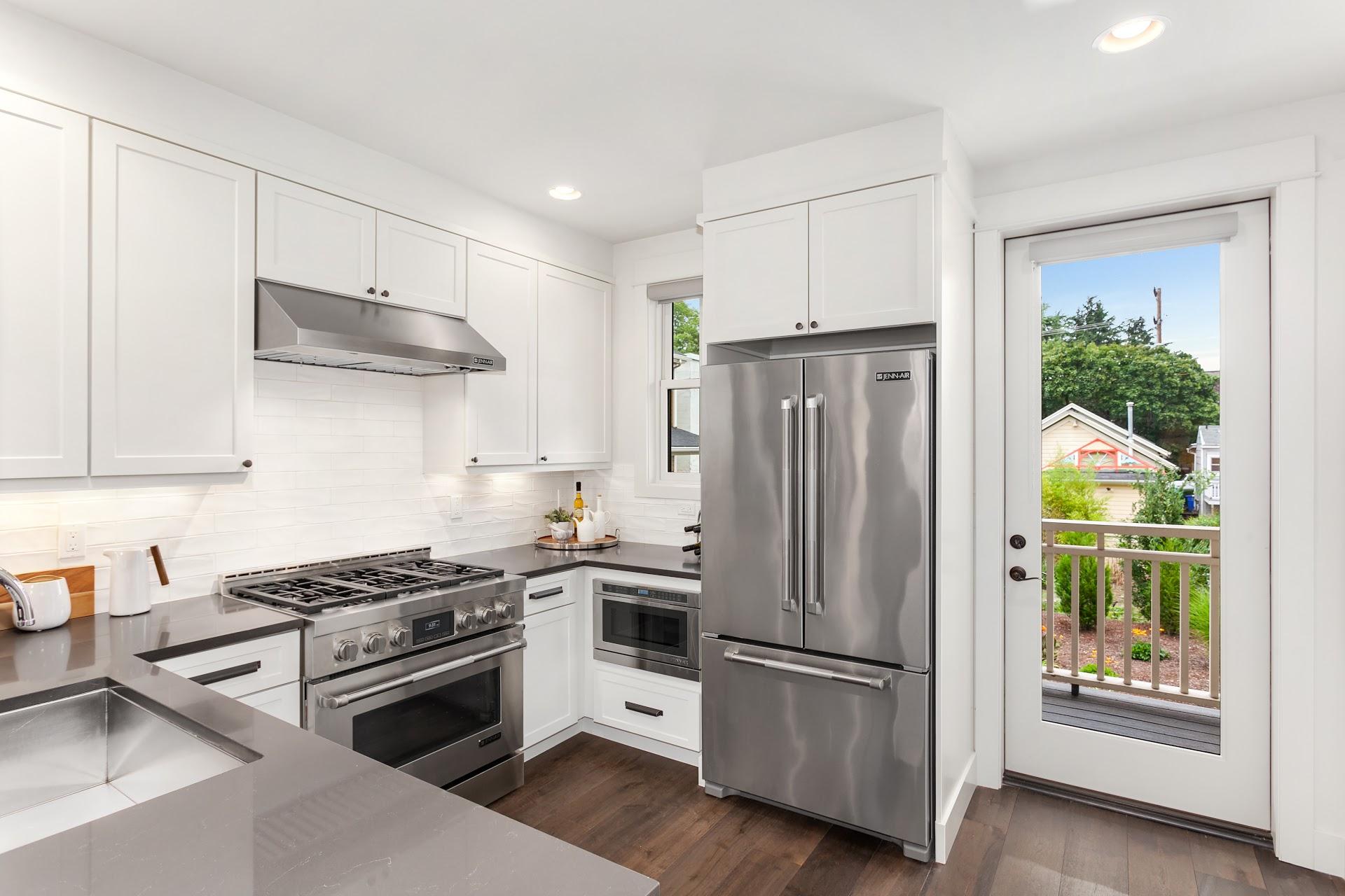 The backyard steals the show here, with both a pergola and a just-built detached studio with walls of windows that makes indoor-outdoor flow easy. Entertain to your heart’s content, use this as a home office, or create art in the beautiful, light-filled space. This ideal location is situated just off the ridge, only a few blocks to the shops and restaurants on Fremont. Walk score of 83, bike score of 97! HES=1