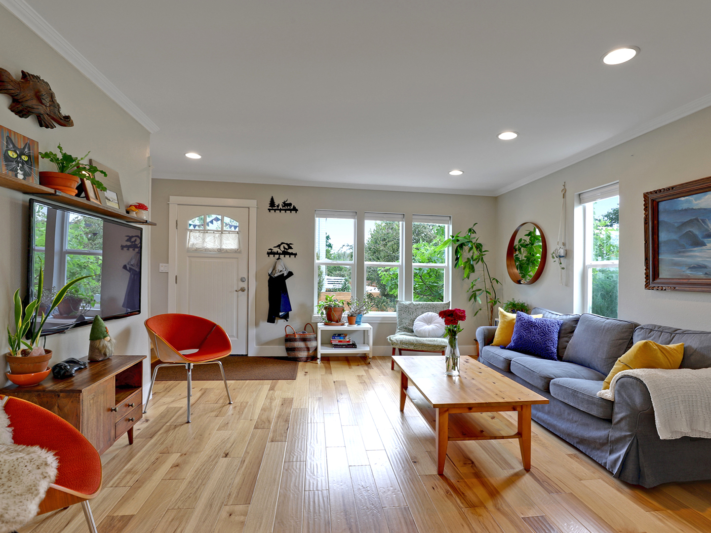 From the moment you step through the front door, you’ll notice the details: heated floors in multiple bathrooms and the convenient mud room, stunning designer wallpaper and tile throughout, 7 inch engineered white oak plank flooring, smart opportunities for storage, energy efficient upgrades, seismic retrofitting, an EPA certified wood burning stove in the spacious living room, and so much more. The integrated kitchen/dining space is a showstopper packed with high-end features including top-of-the-line appliances and thoughtfully placed windows to maximize the light, and the main floor bedroom wing features three full bedrooms, including the spacious primary ensuite. The basement provides space for a fourth bedroom with an ensuite bath that can also be utilized as a den, or explore the potential to create rentable space here, with Reed College a mere .3 miles away.